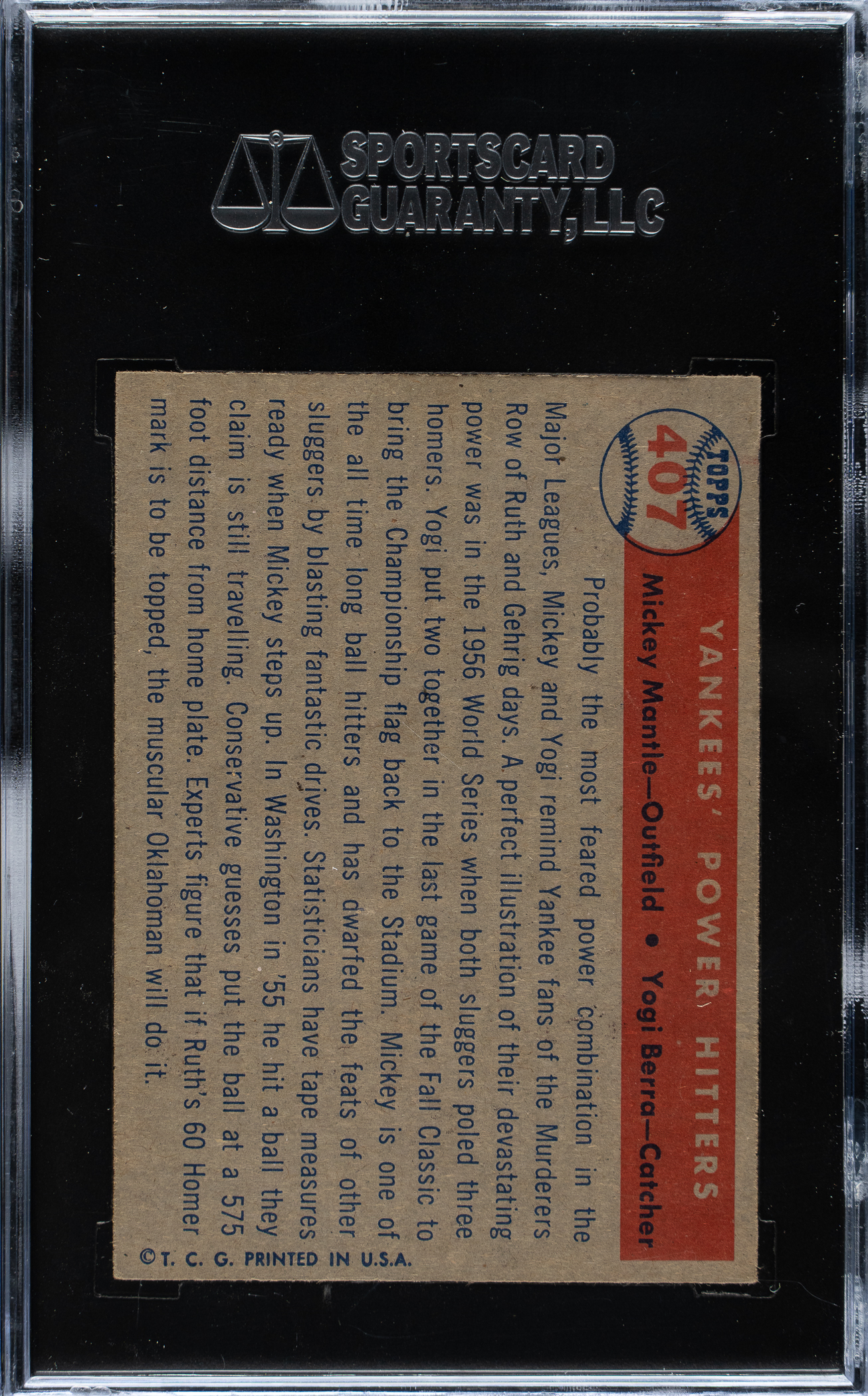 Graded NM 84 by SGC. New York Yankees Hall of Famers Mickey Mantle and Yogi Berra.