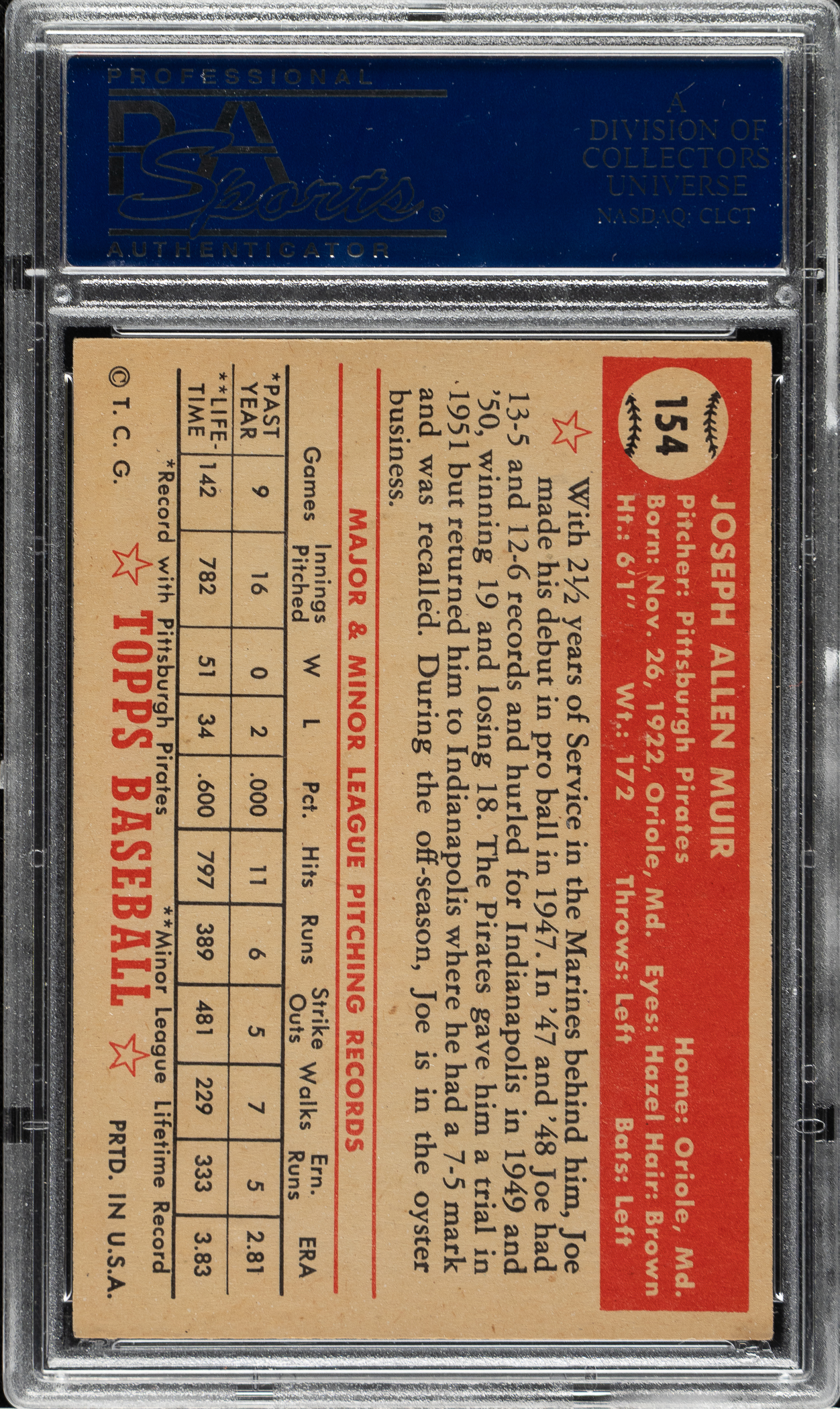 Lot # 1024: 1952 Topps #154 Joe Muir PSA NM-MT 8