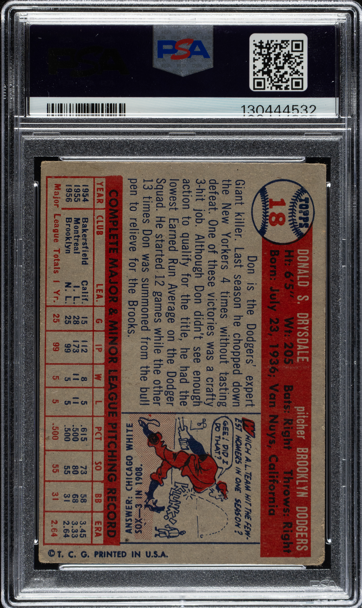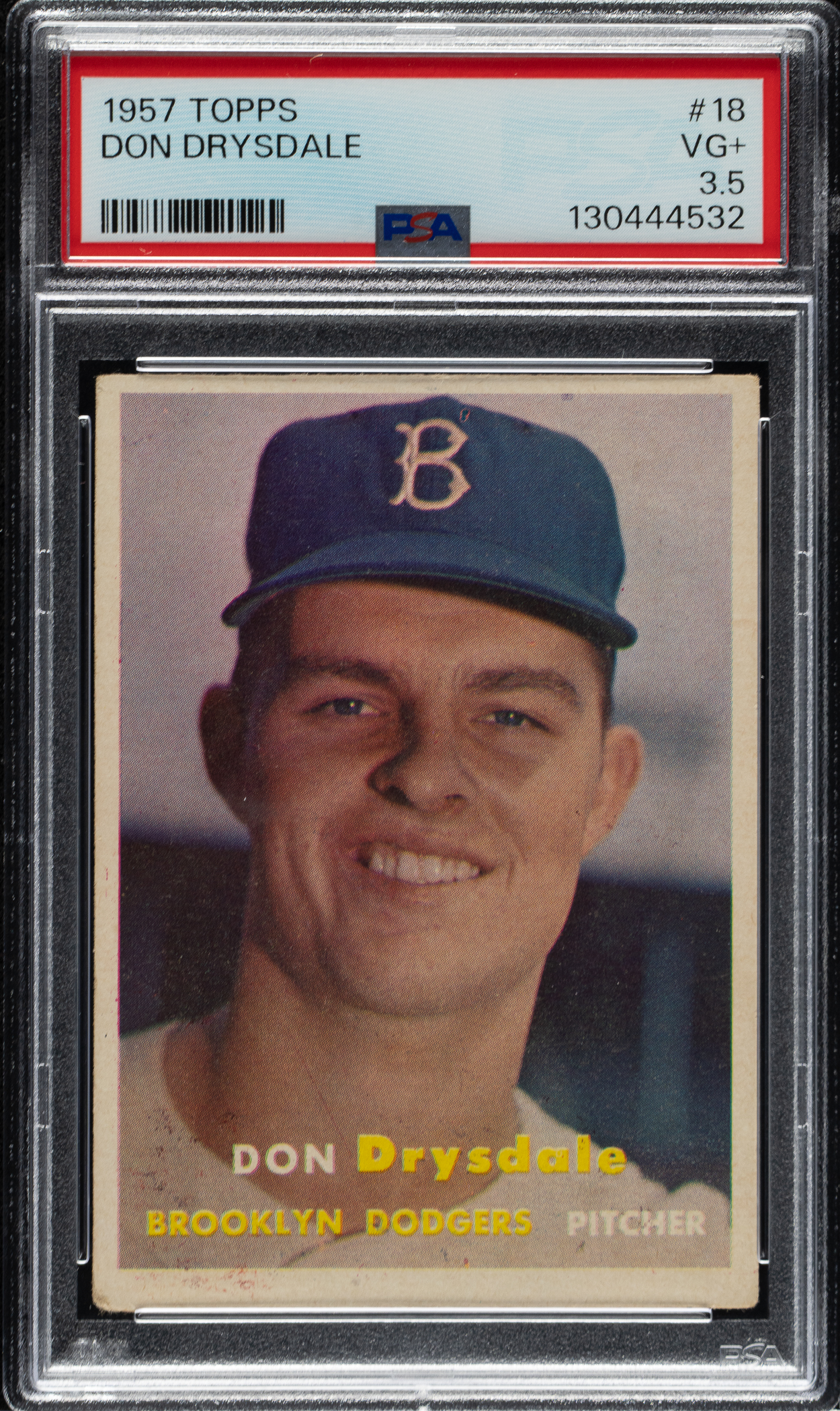 Graded VG+ 3.5 by PSA. Brooklyn Dodgers Hall of Famer Don Drysdale.