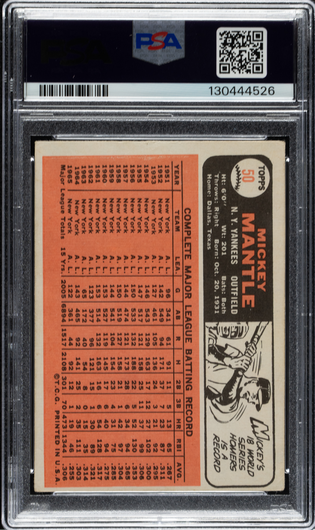 Lot # 2033: 1966 Topps #50 Mickey Mantle PSA GOOD+ 2.5