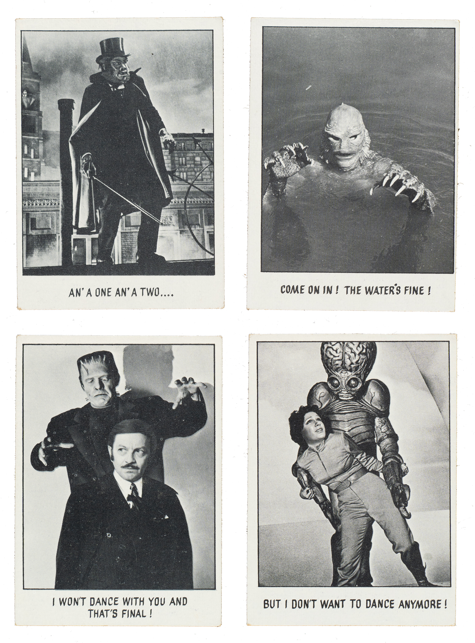 Complete 128-card set of 1973 Topps "You'll Die Laughing" trading cards, plus original wrapper. Condition of the set ranges from Gd to Ex (averaging Vg+), with a couple higher and lower. The condition of the wrapper is Vg-Ex. Total: 128 cards plus wrapper. The size/weight of this item requires that there will be an additional shipping charge for this lot.