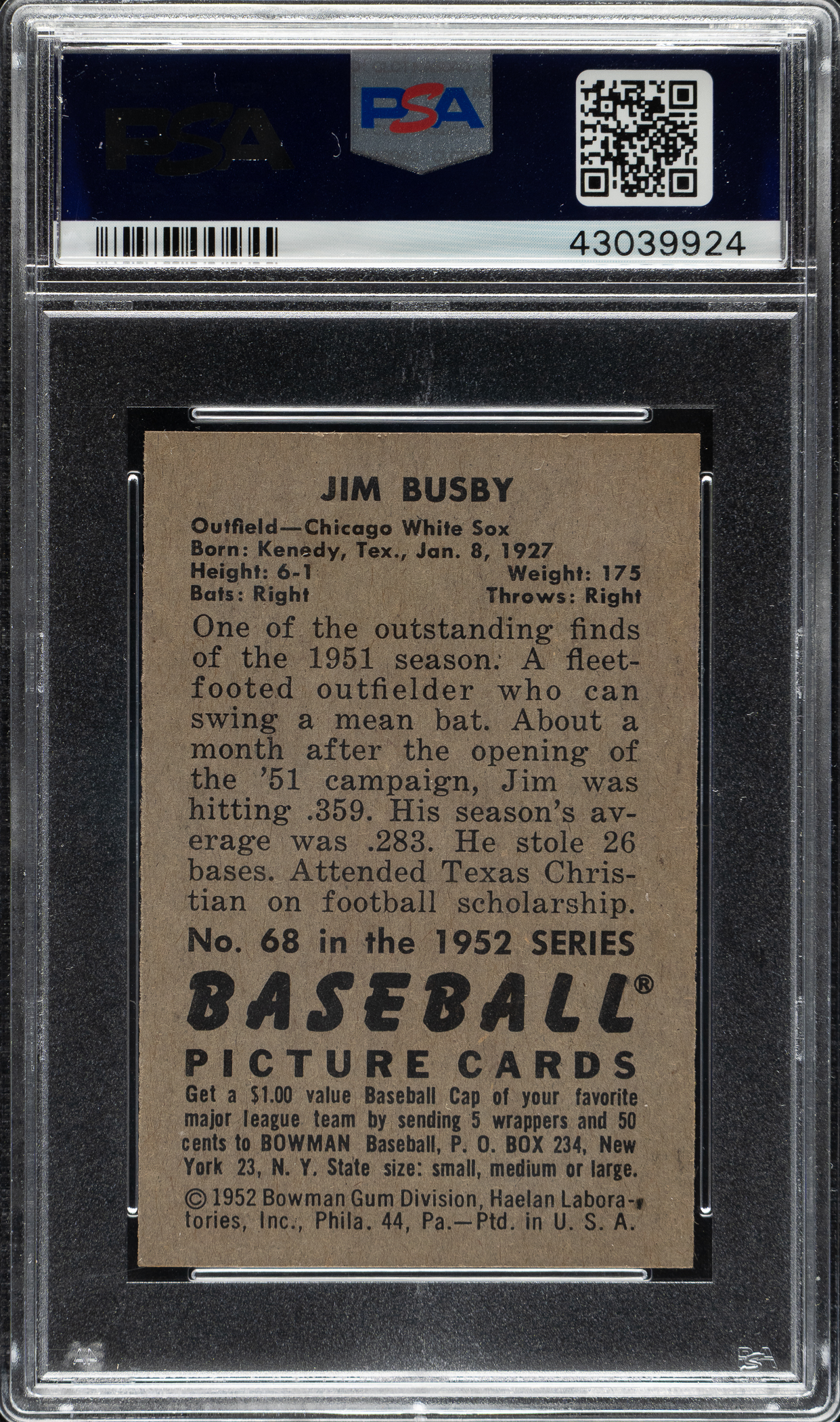 Graded MINT 9 by PSA. Chicago White Sox. One of only four examples graded at this level by PSA with none higher!