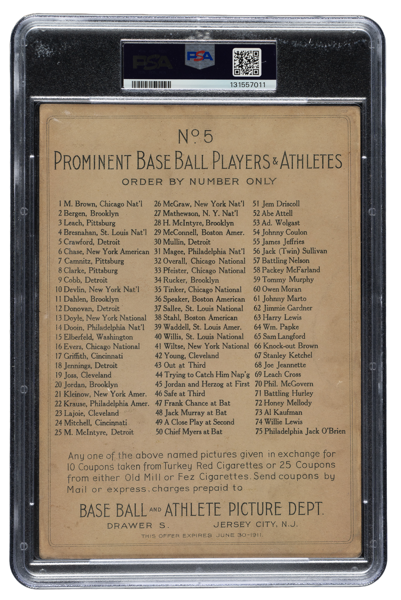 Graded VG 3 by PSA. Detroit Tigers Hall of Famer Sam Crawford.