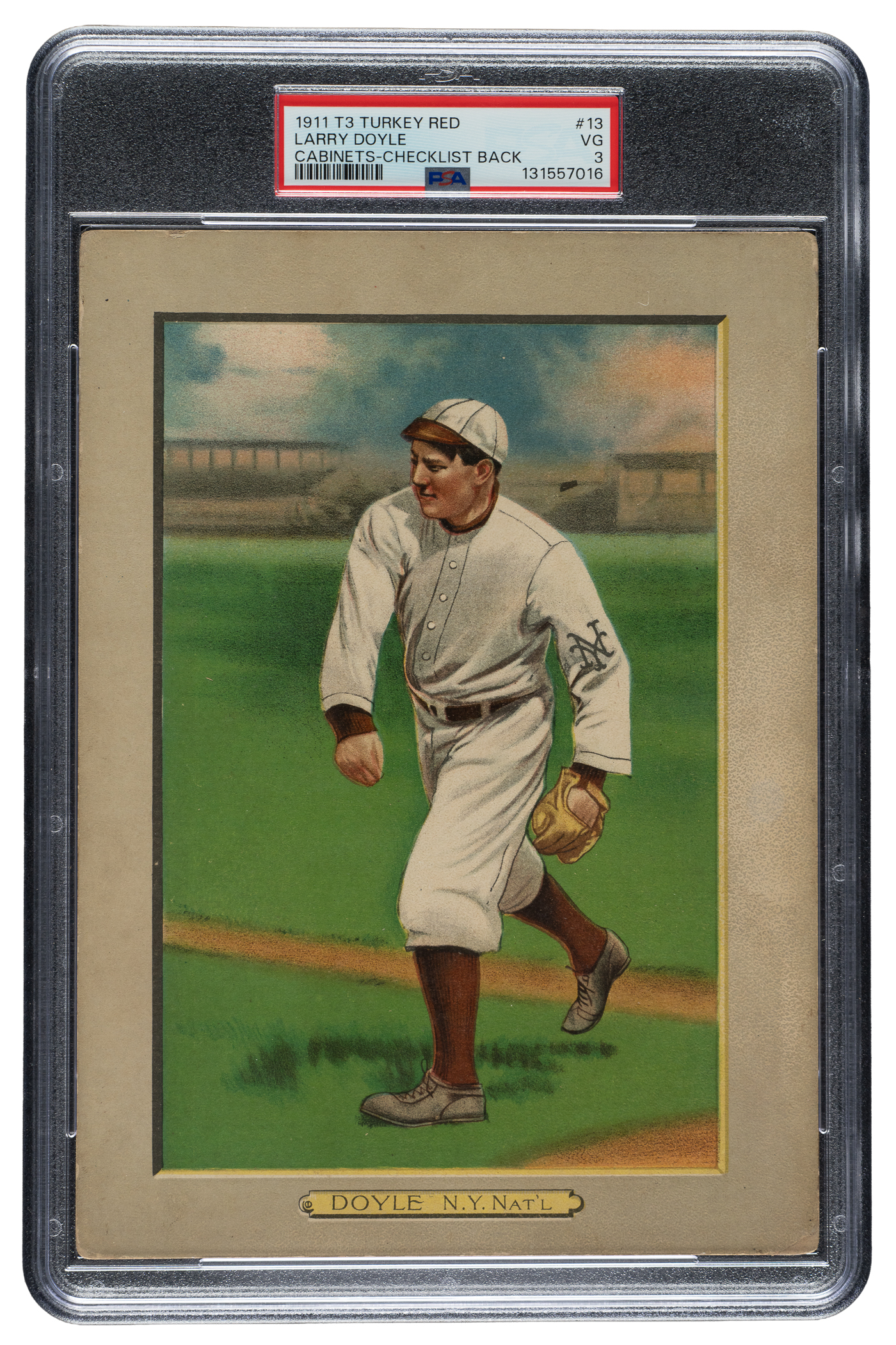 Lot # 815: 1911 T3 Turkey Red #13 Larry Doyle PSA VG 3