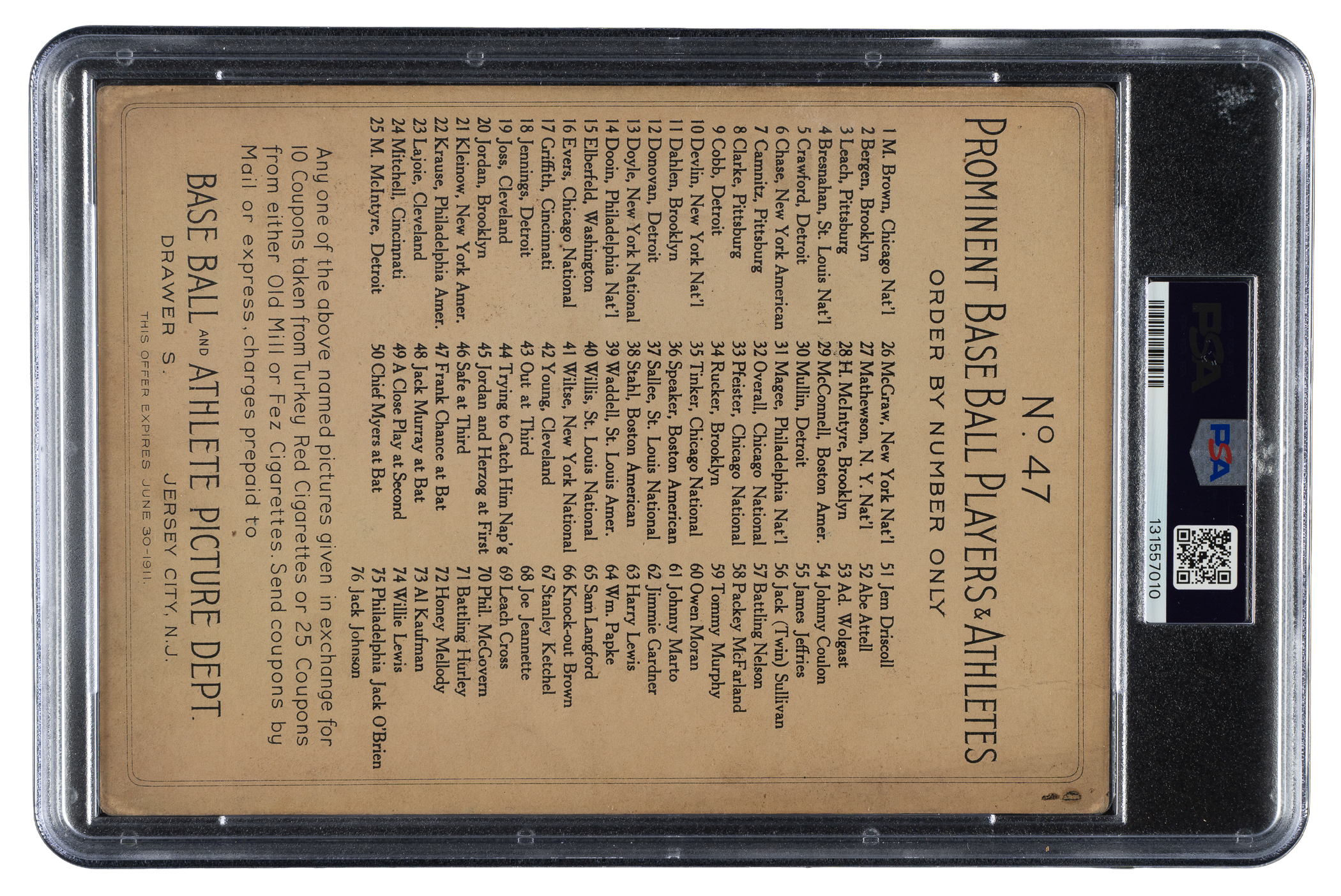 Graded GOOD+ 2.5 by PSA. Chicago Cubs Hall of Famer Frank Chance.