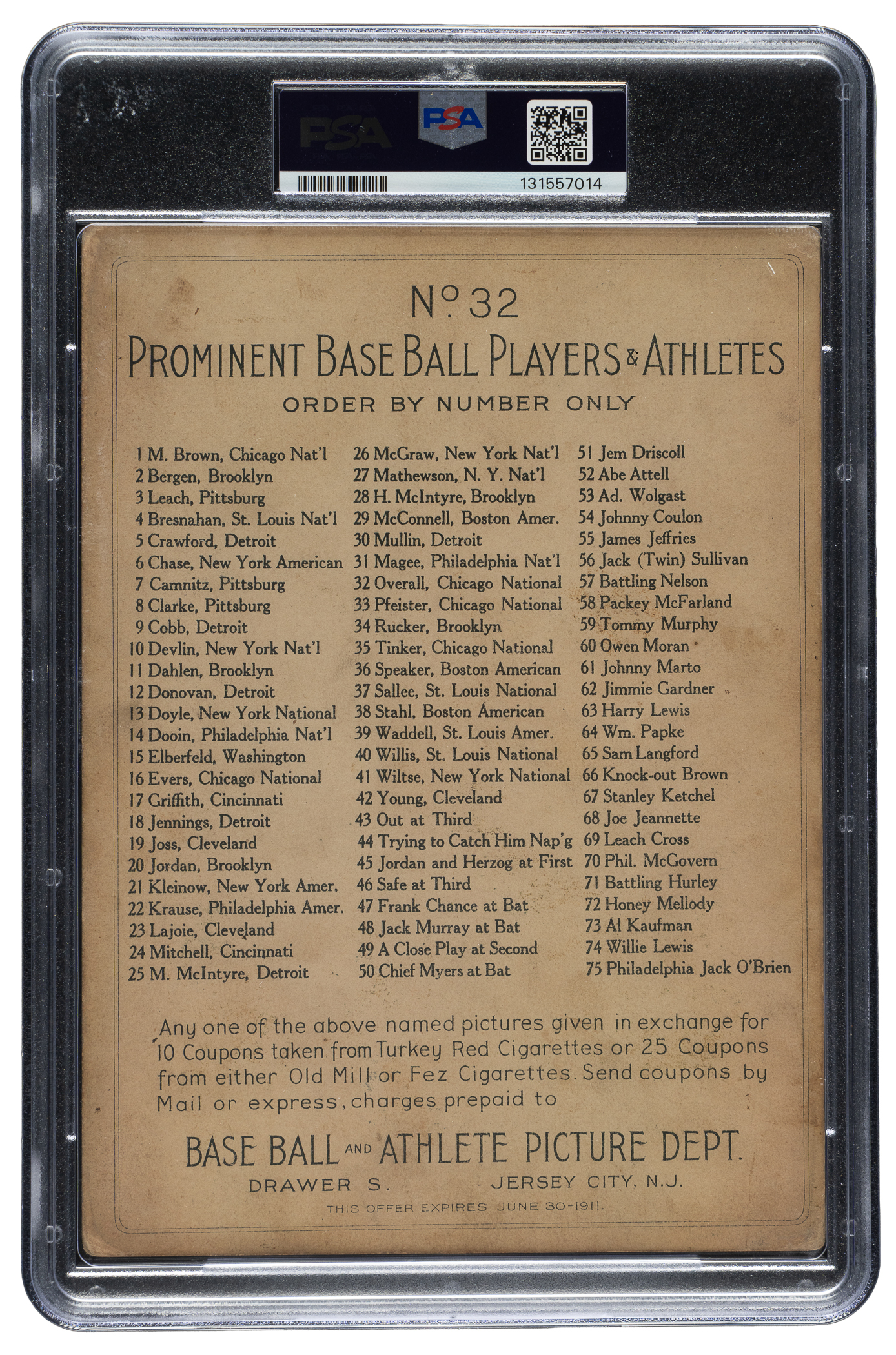 Lot # 822: 1911 T3 Turkey Red #32 Orval Overall PSA VG 3