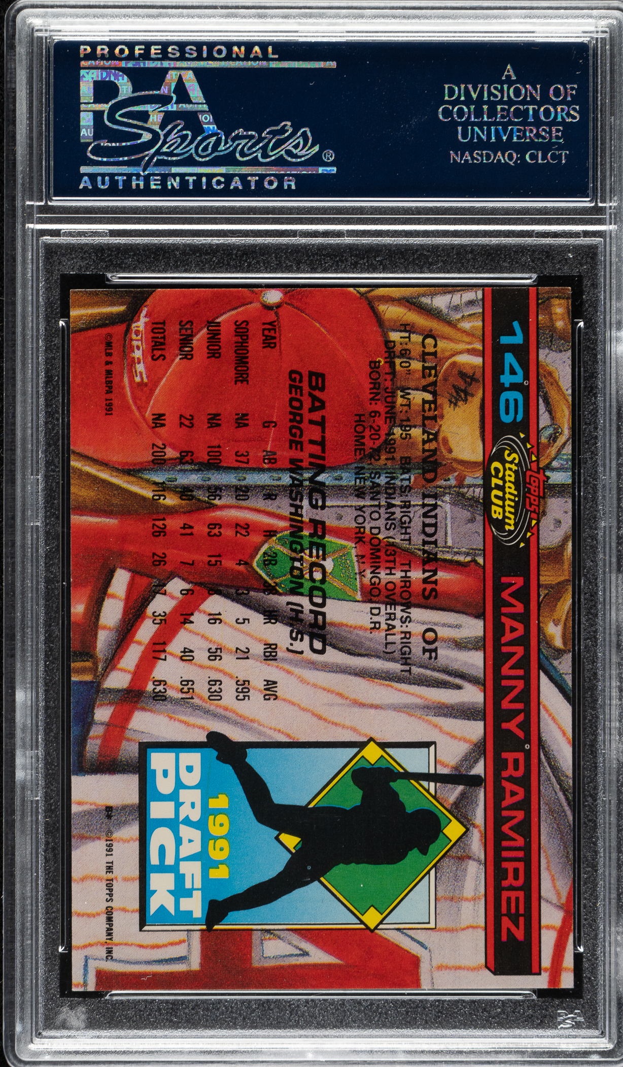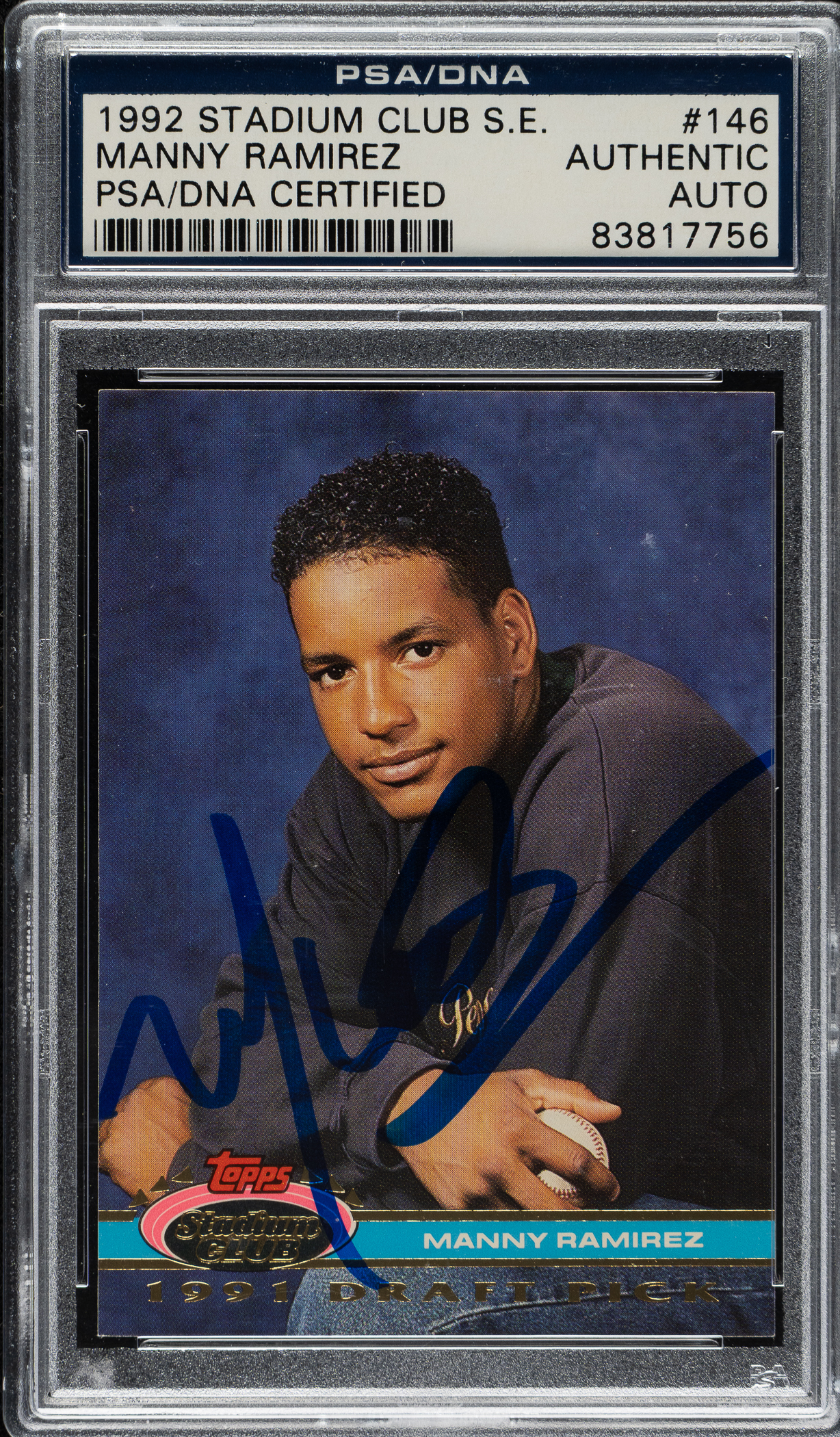 Lot # 2463: Signed 1992 Topps Stadium Club Dome #146 Manny Ramirez - PSA/DNA