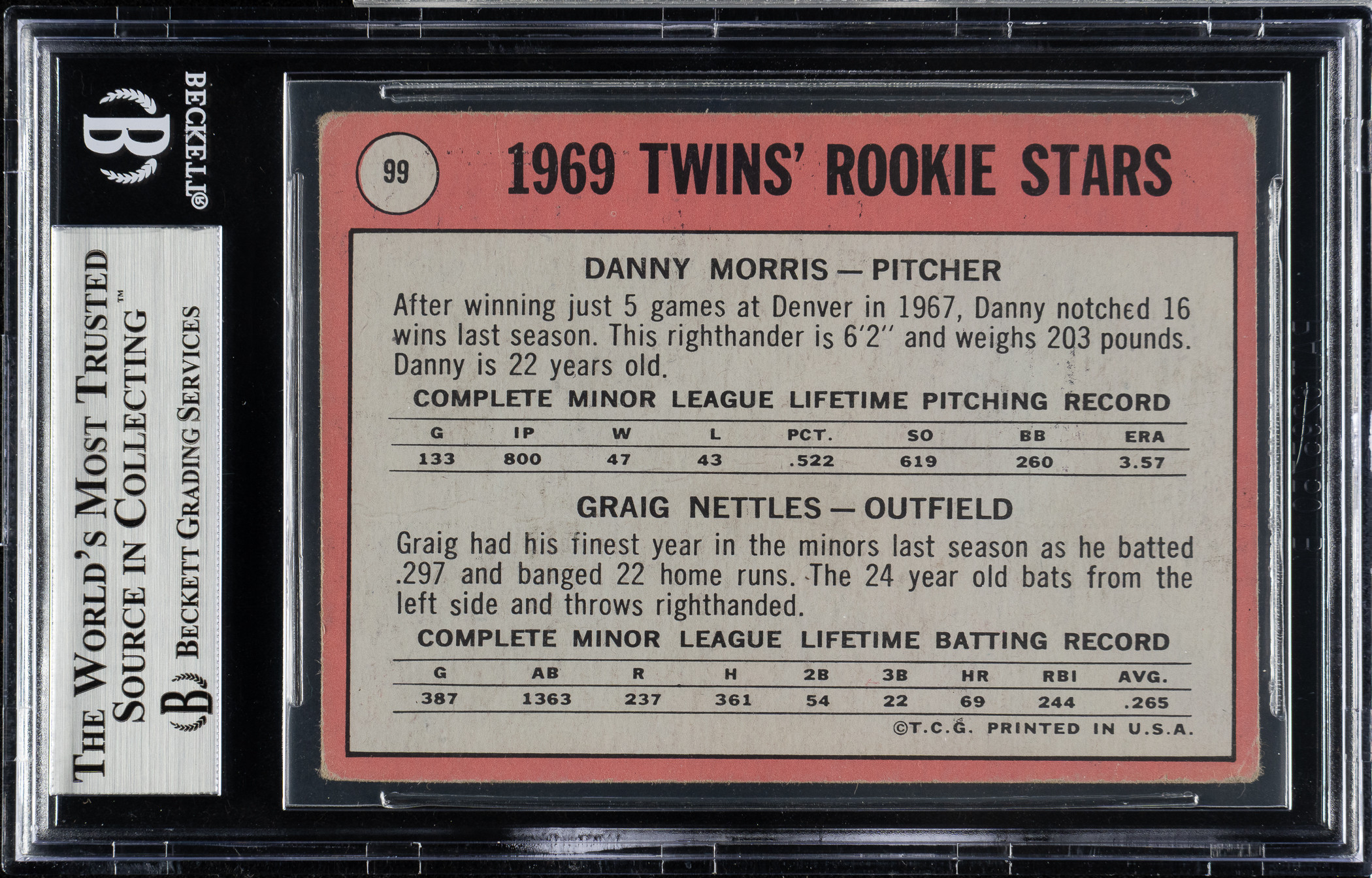 BGS has encapsulated the card, grading the signature Authentic. Minnesota Twins.
