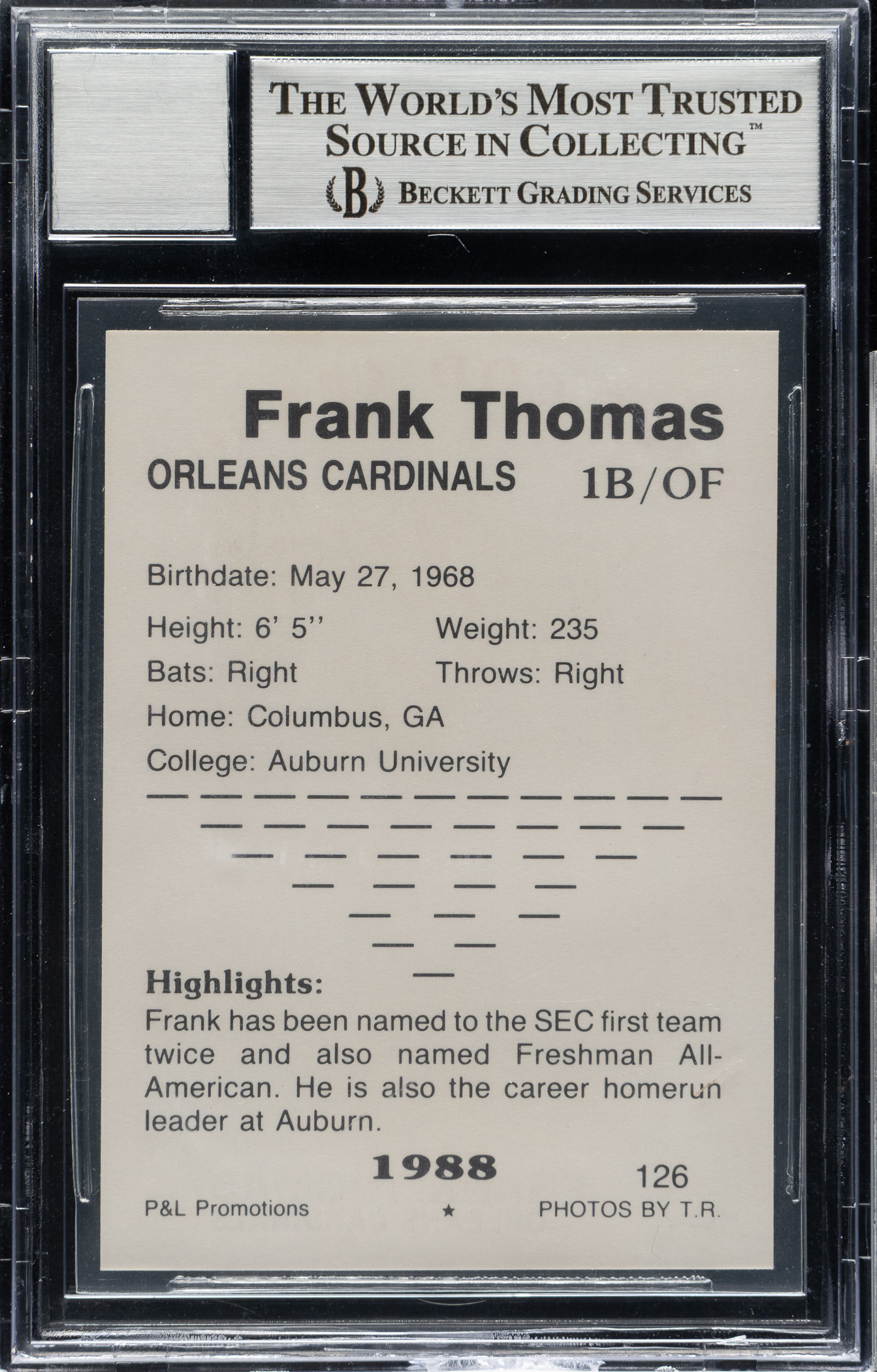 Beckett has encapsulated the card and graded the signature GEM MINT 10. Chicago White Sox Hall of Famer Frank Thomas.