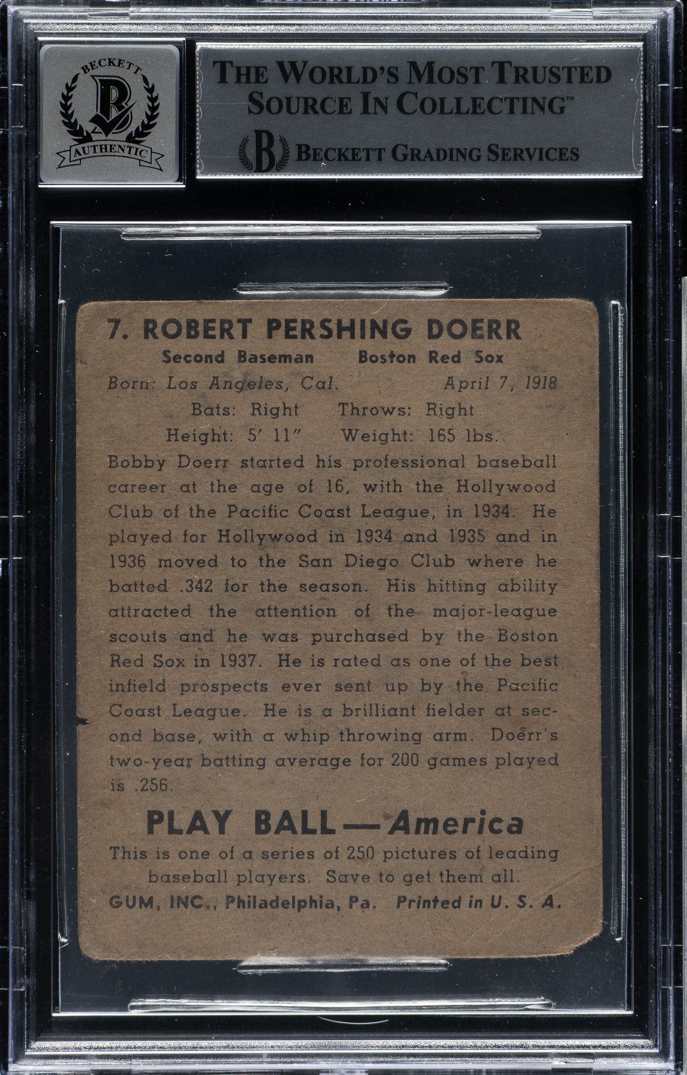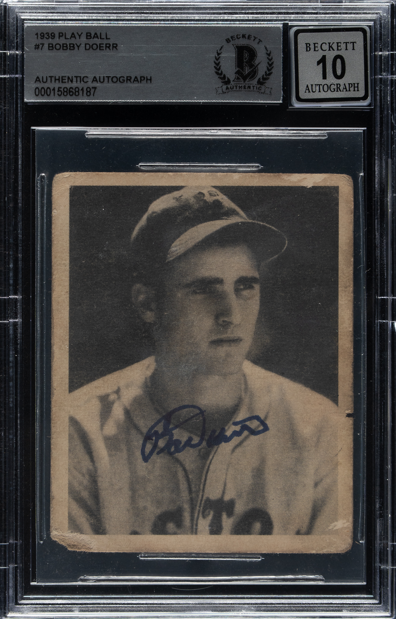 Beckett has encapsulated the card and graded the signature GEM MINT 10. Boston Red Sox Hall of Famer Bobby Doerr.