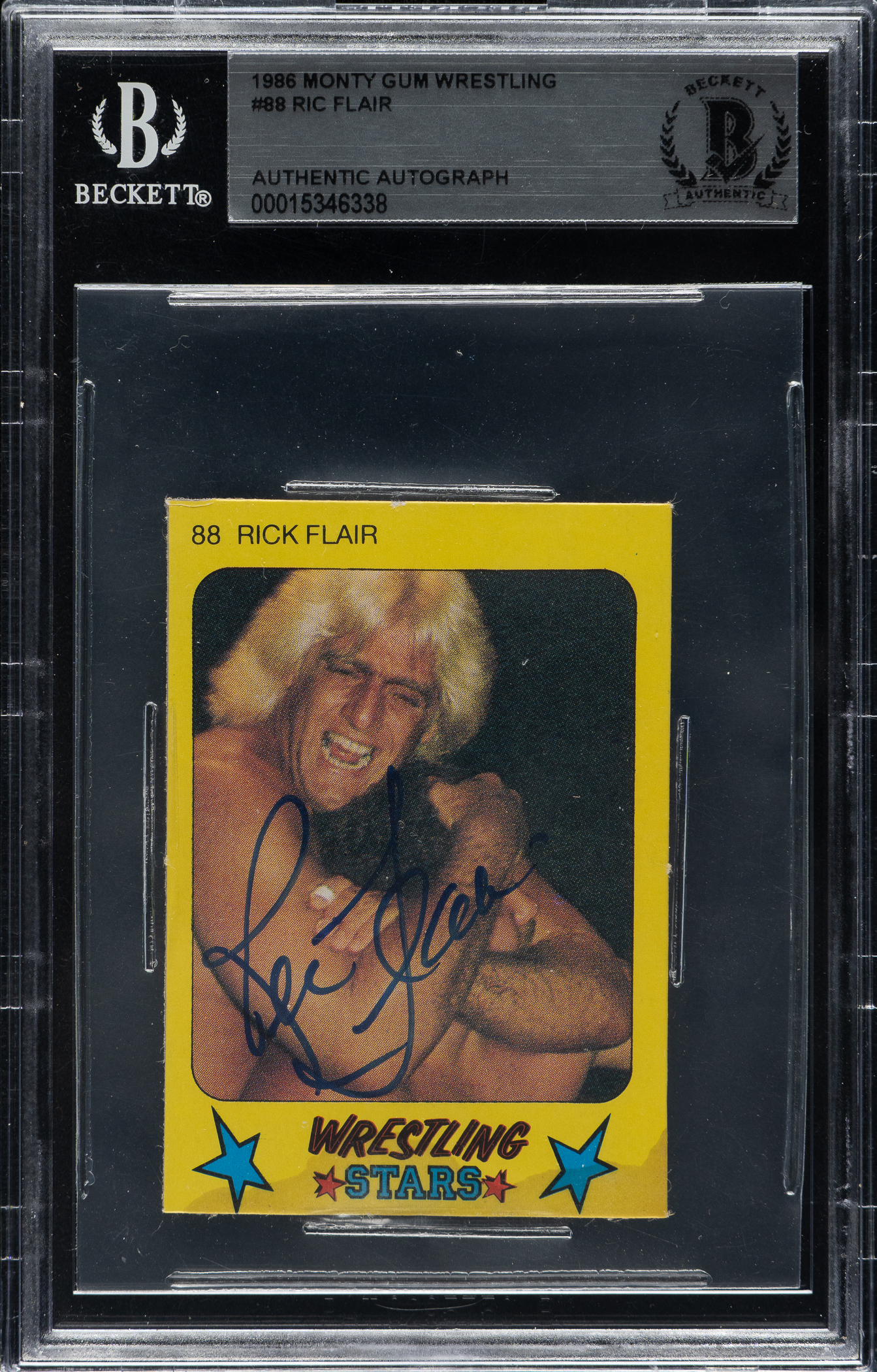 Beckett has encapsulated the card, grading the signature Authentic. Wrestling Hall of Famer Ric Flair.