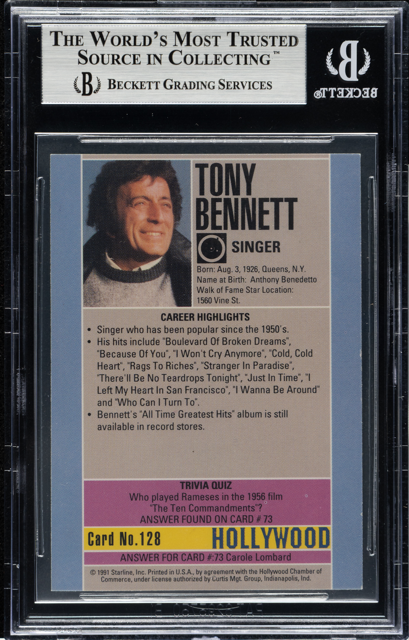 Beckett has encapsulated the card, grading the signature Authentic.
