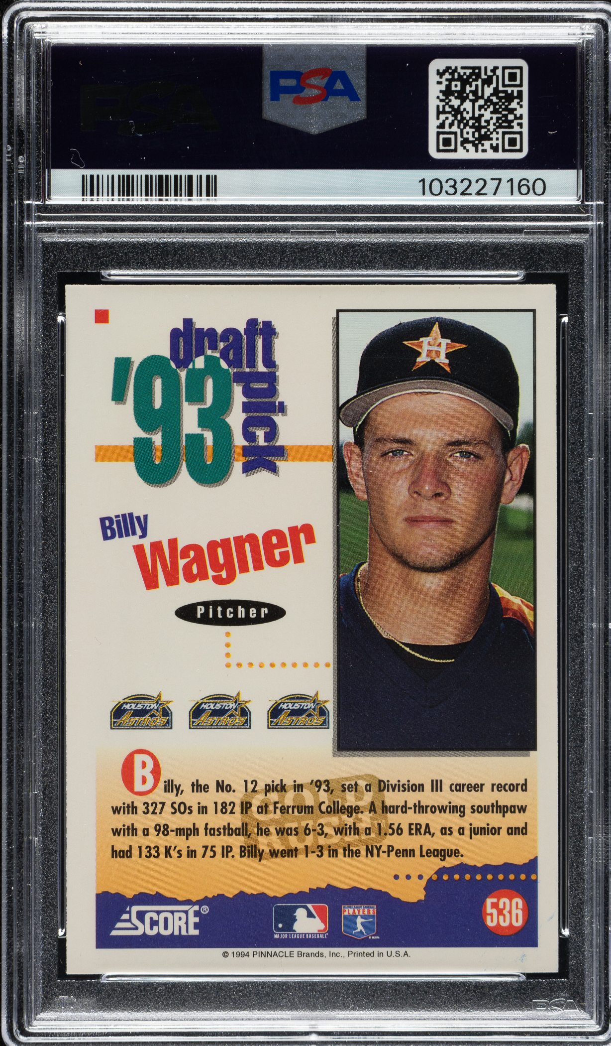 PSA/DNA has encapsulated the card, grading the signature GEM MINT 10. Houston Astros Hall of Famer Billy Wagner.