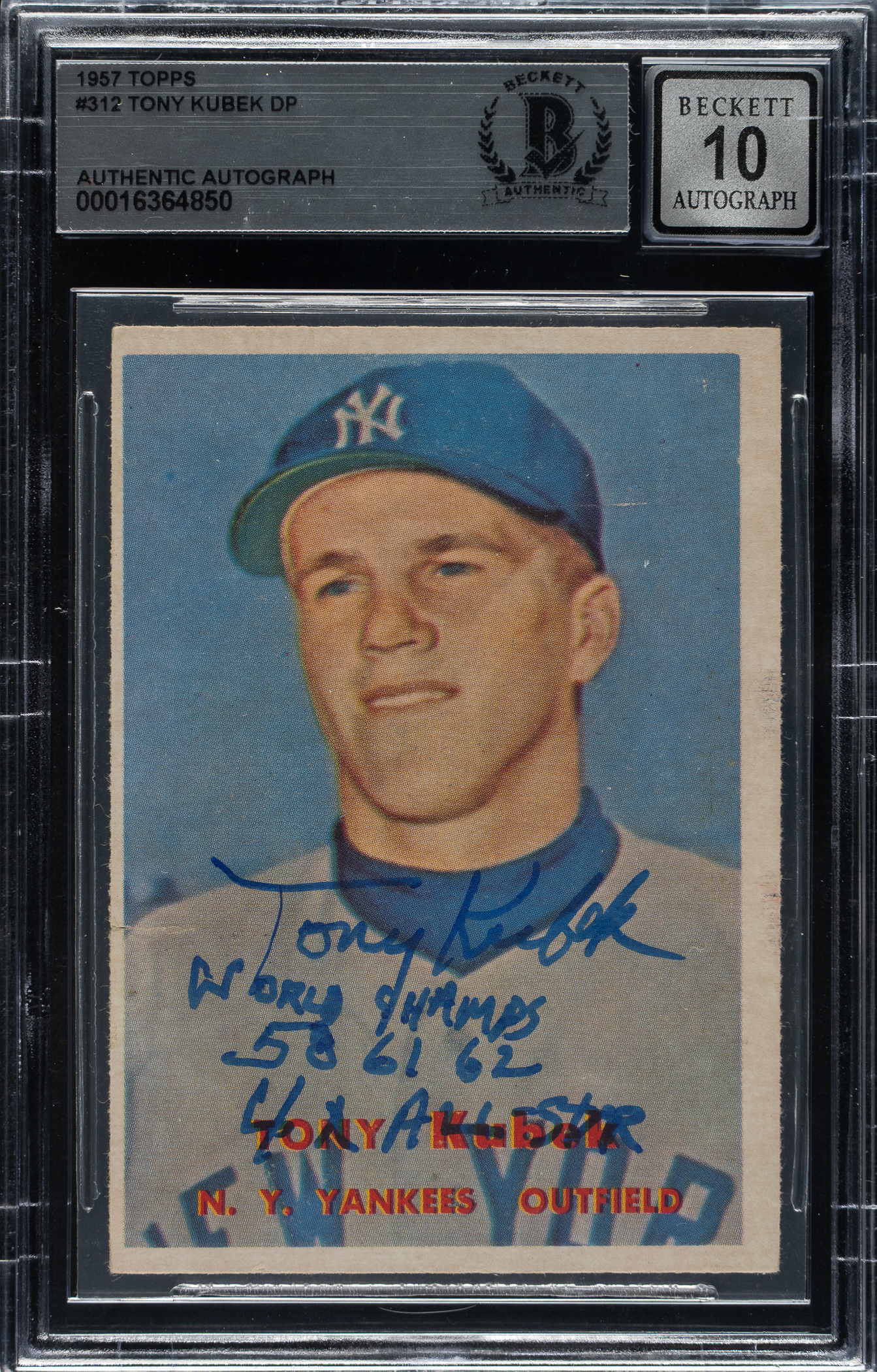 Beckett has encapsulated the card and graded the signature GEM MINT 10. New York Yankees.
