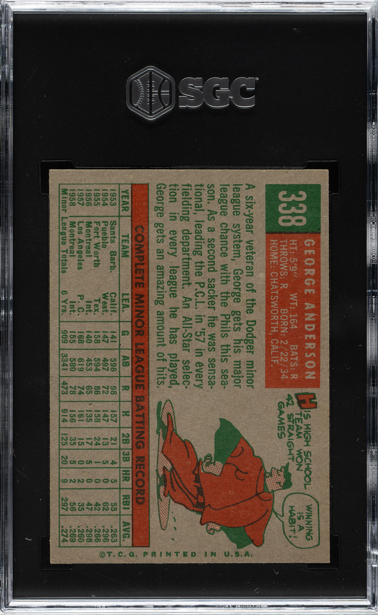 Graded NM/MT 8 by SGC. Philadelphia Phillies Hall of Famer George "Sparky" Anderson