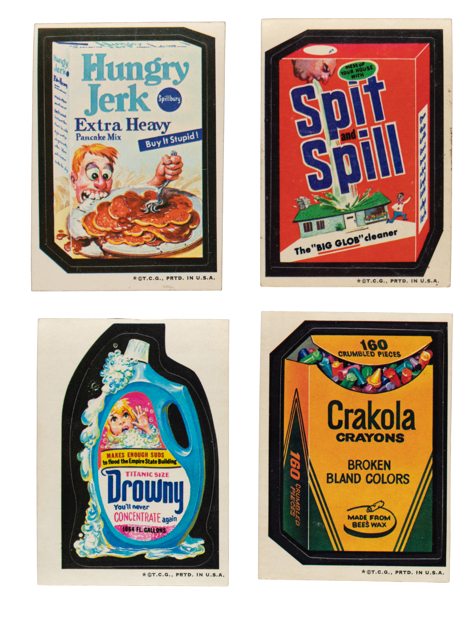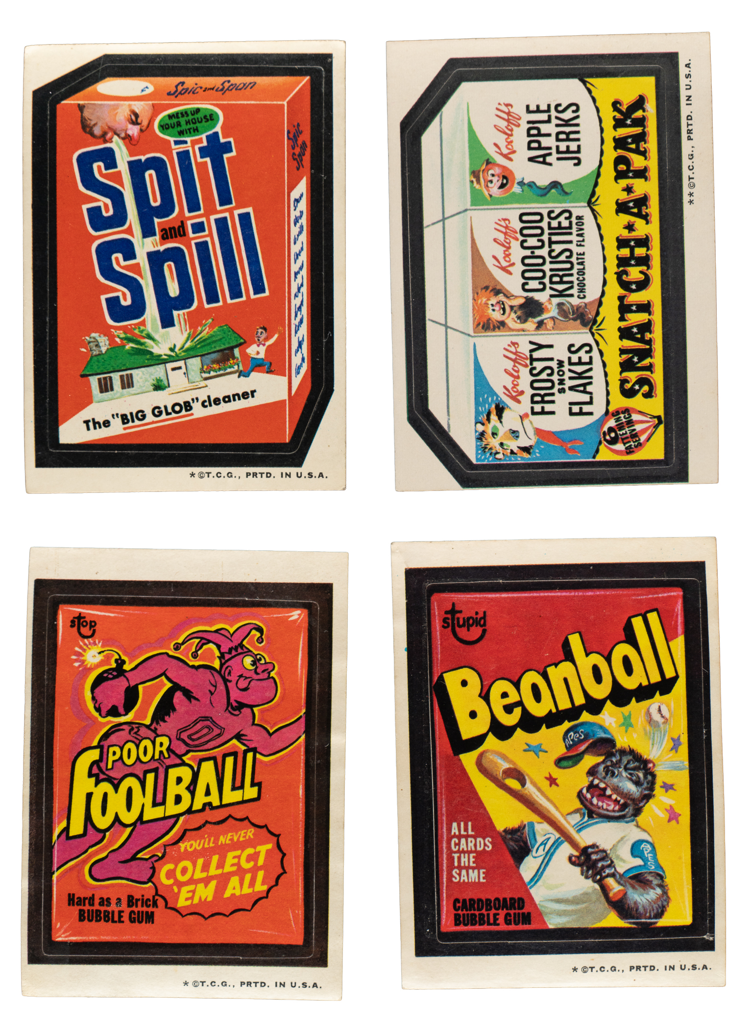 Presented is a 31-card complete set of 1974 Topps Wacky Packages Third Series stickers, plus a complete set of nine puzzle checklists. Condition of the stickers set is 19% Ex-Mt or slightly better, 48% Vg-Ex to Ex, and 33% Gd to Vg (including a couple Fr). Condition of the checklists ranges from Vg to Ex (averaging Vg-Ex), with one Gd+. Keys: Spit and Spill (“Spic and Span” on top and side, Vg-Ex) and Spit and Spill (Vg). Total: 40 cards.