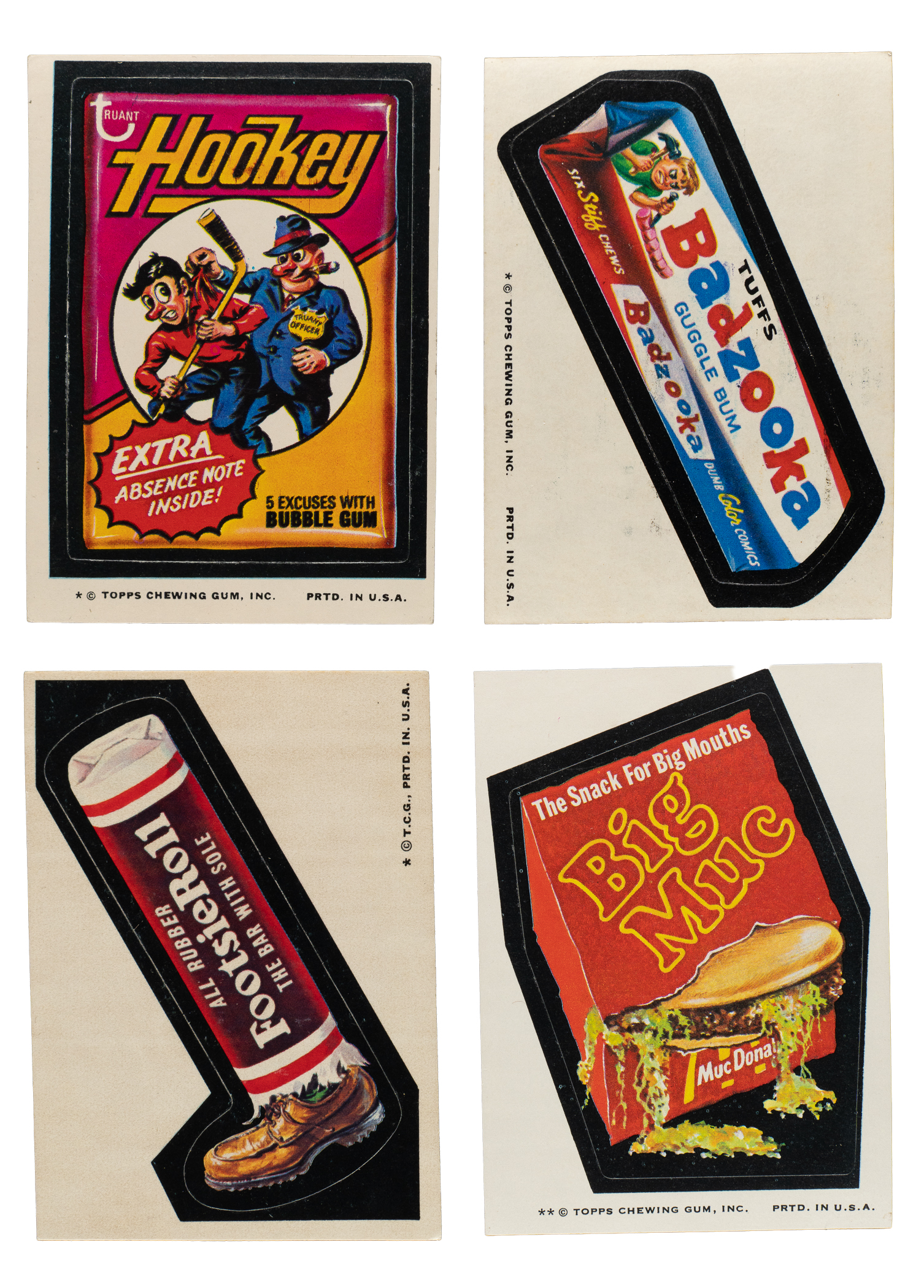 When Wacky Packages stickers were issued in the early 1970s, kids went wild. Whether it was the times, as youngsters became more enlightened about the manipulations of Madison Avenue, or the amusing irreverence of the artwork, the set struck a chord with the youth of America that continues to this day. Offered is a complete set collection of Series 6 through 10, plus three checklist puzzle sets. This collection consists of the following: 1) 6th Series Complete Set (33) Plus Puzzle Checklist Set (9): Condition of the stickers ranges from Vg to Ex (averaging Vg-Ex), with a couple slightly higher and lower. Condition of the puzzle checklists is Vg to Vg-Ex overall. 2) 7th Series Complete Set (33) Plus Puzzle Checklist Set (9): Condition of the stickers is 57% Ex-Mt to Nr/Mt (including a couple Nr/Mt-Mt), 30% Vg-Ex to Ex, and 13% Gd to Vg (including one lesser. Condition of the puzzle checklists ranges from Gd to Ex (averaging Vg+), with one Pr due to marks. 3) 9th Series Complete Set (29) Plus Puzzle Checklist Set (9): Condition of the stickers is 30% Ex-Mt to Nr/Mt and 70% Vg-Ex to Ex (including a couple slightly lesser and one with a slight miscut). Condition of the puzzle checklists ranges from Vg to Ex (averaging Vg-Ex), with one Nr/Mt. 4) 10th Series Complete Set (29): Condition is 70% Vg-Ex to Ex (including a couple Ex-Mt) and 30% Gd to Vg (including one with a slight miscut). Total: 151 cards. The size/weight of this item requires that there will be an additional shipping charge for this lot.