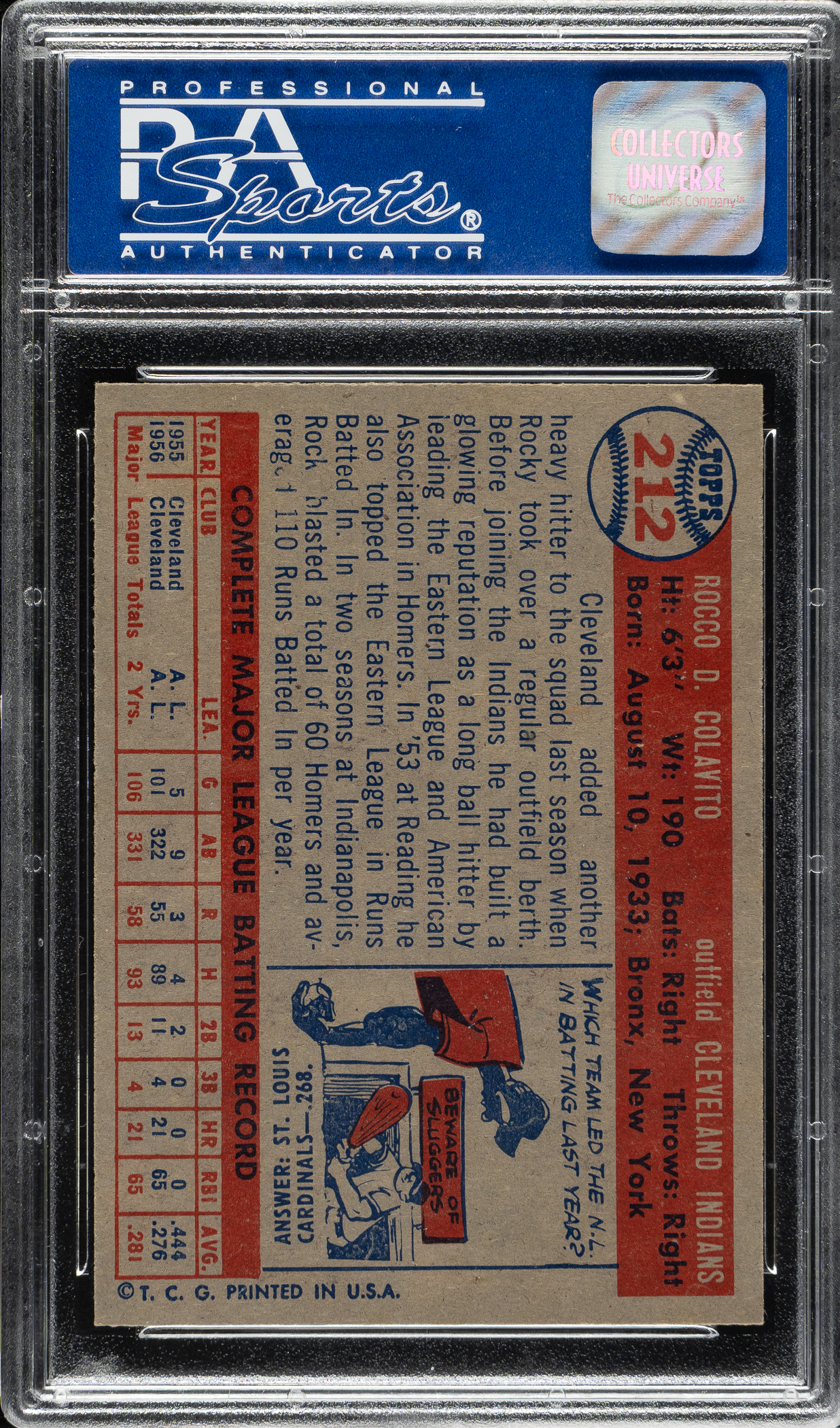 Graded NM-MT 8 by PSA. Cleveland Indians.