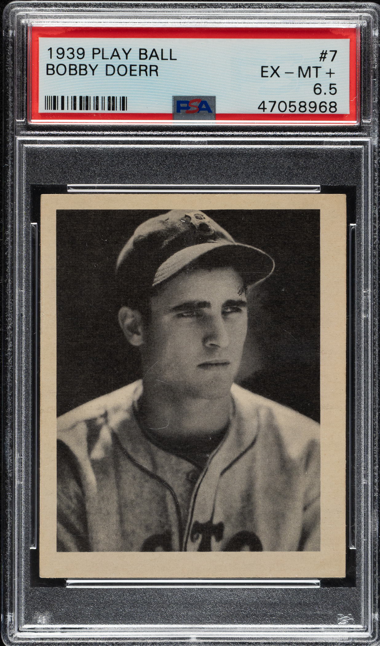 Graded EX-MT+ 6.5 by PSA. Boston Red Sox Hall of Famer Bobby Doerr.
