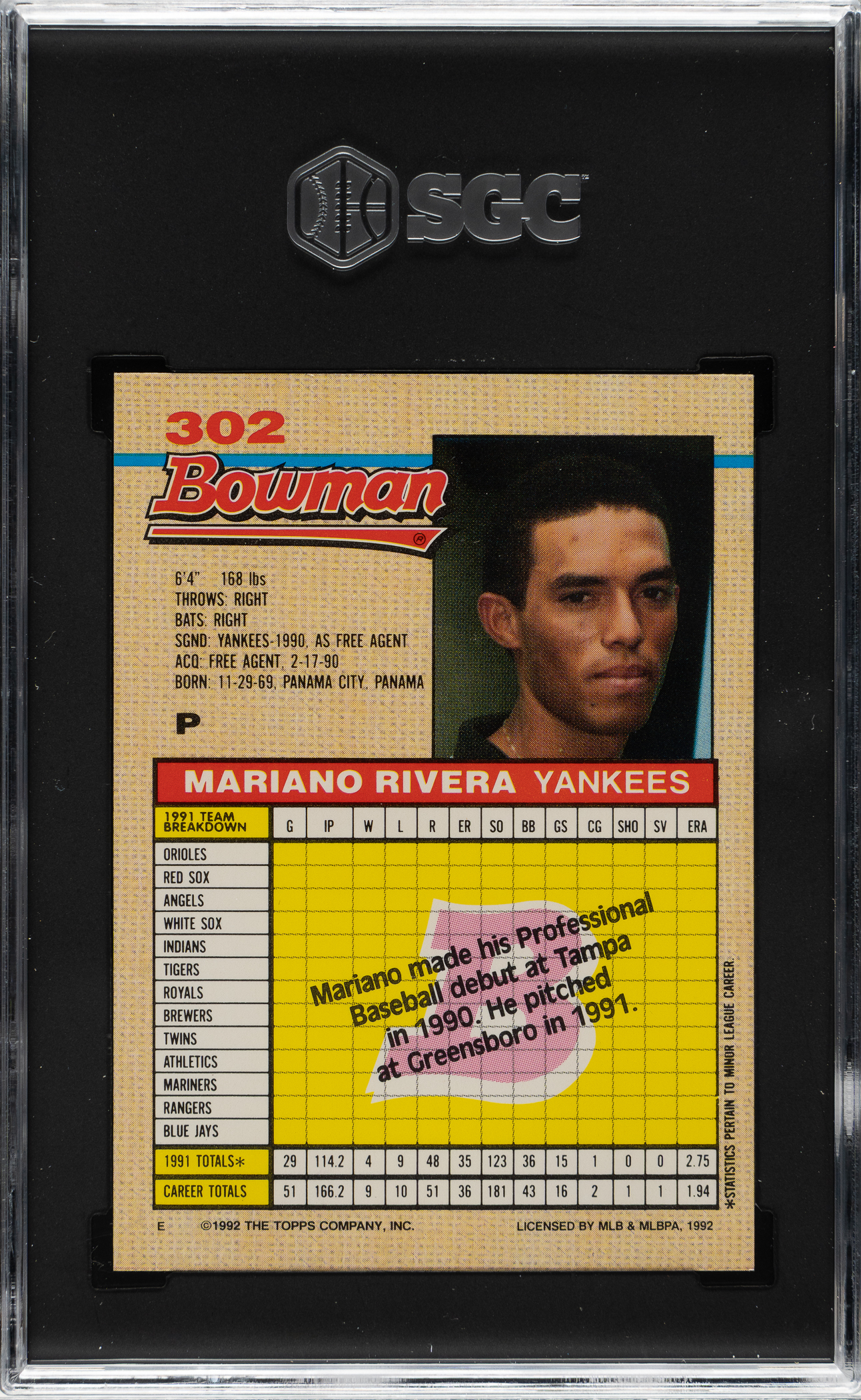 Graded GEM MINT 10 by SGC. New York Yankees Hall of Famer Mariano Rivera.
