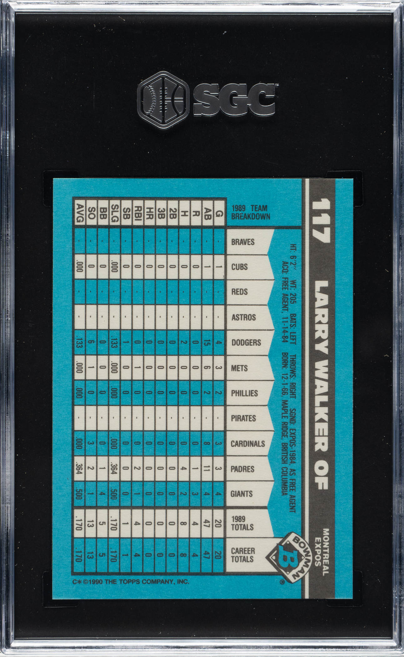 Graded GEM MINT 10 by SGC. Montreal Expos Hall of Famer Larry Walker.