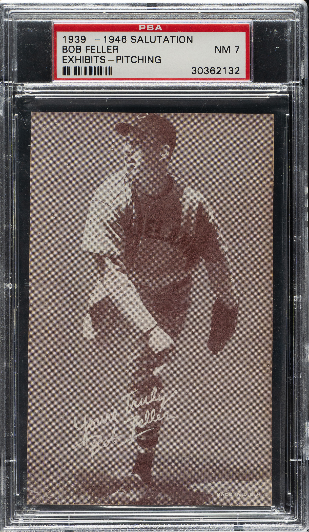 Graded NM 7 by PSA. Cleveland Indians Hall of Famer Bob Feller.