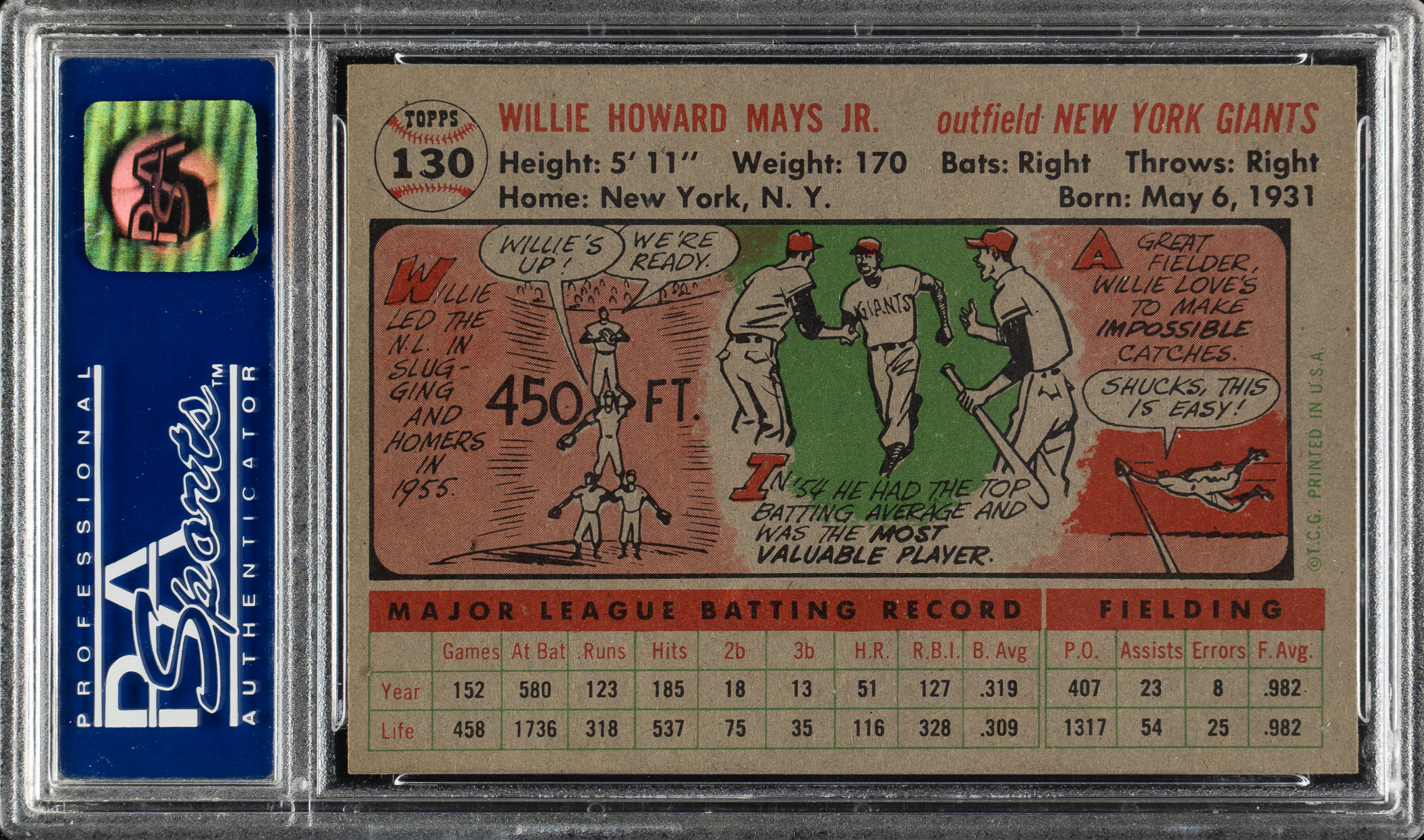 Graded NM-MT 8 by PSA. New York Giants Hall of Famer Willie Mays.