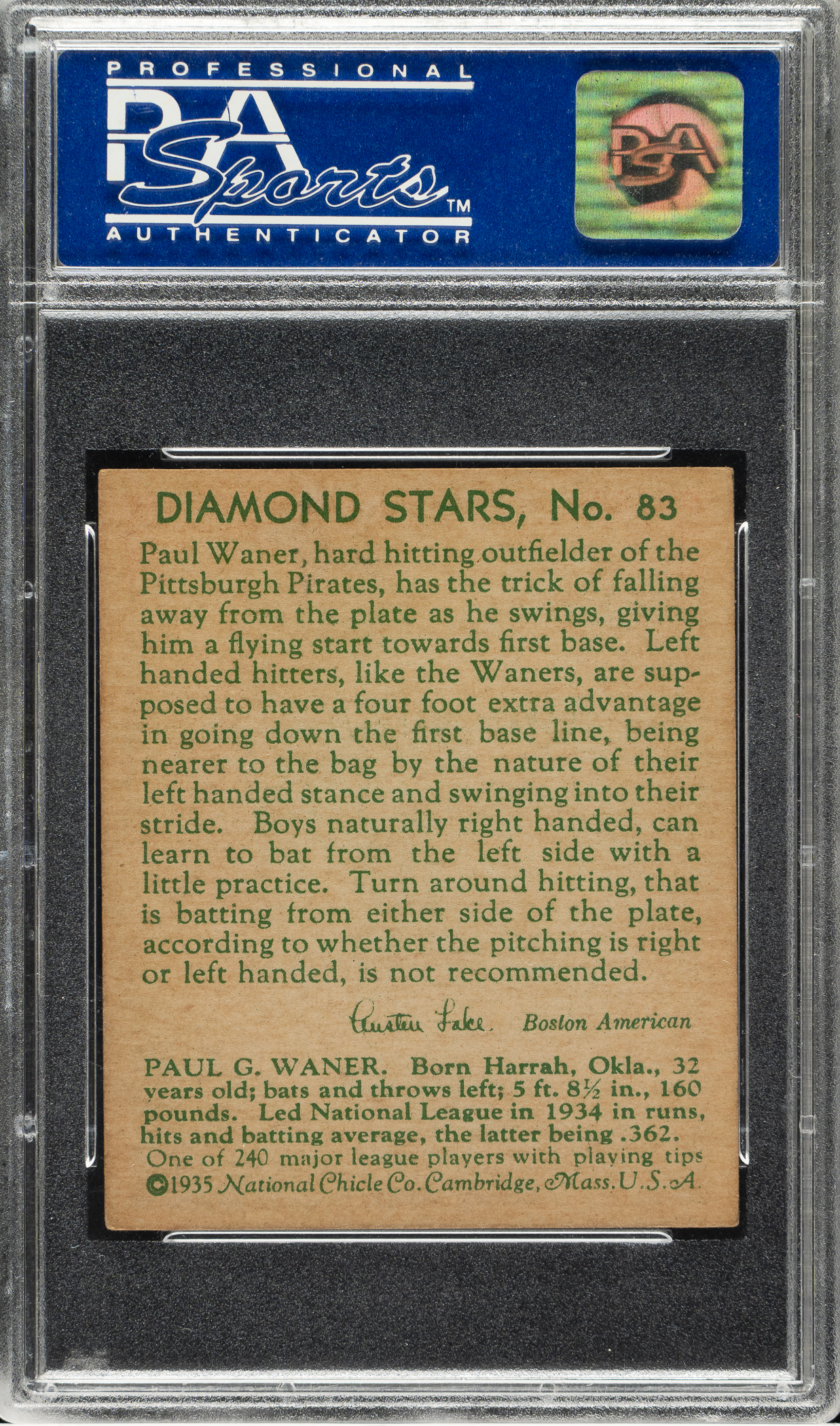 Graded EX-MT 6 by PSA. Pittsburgh Pirates Hall of Famer Paul Waner.