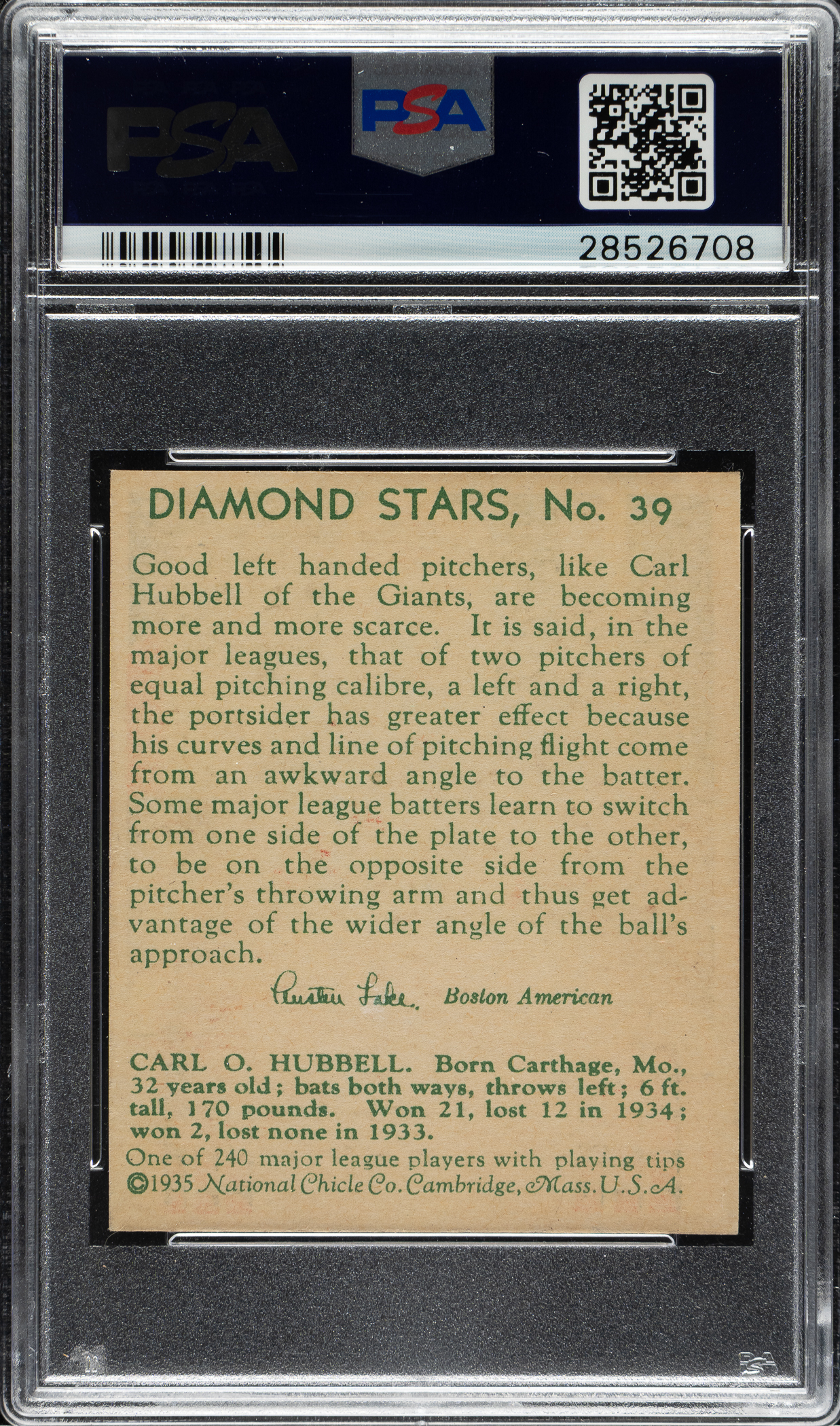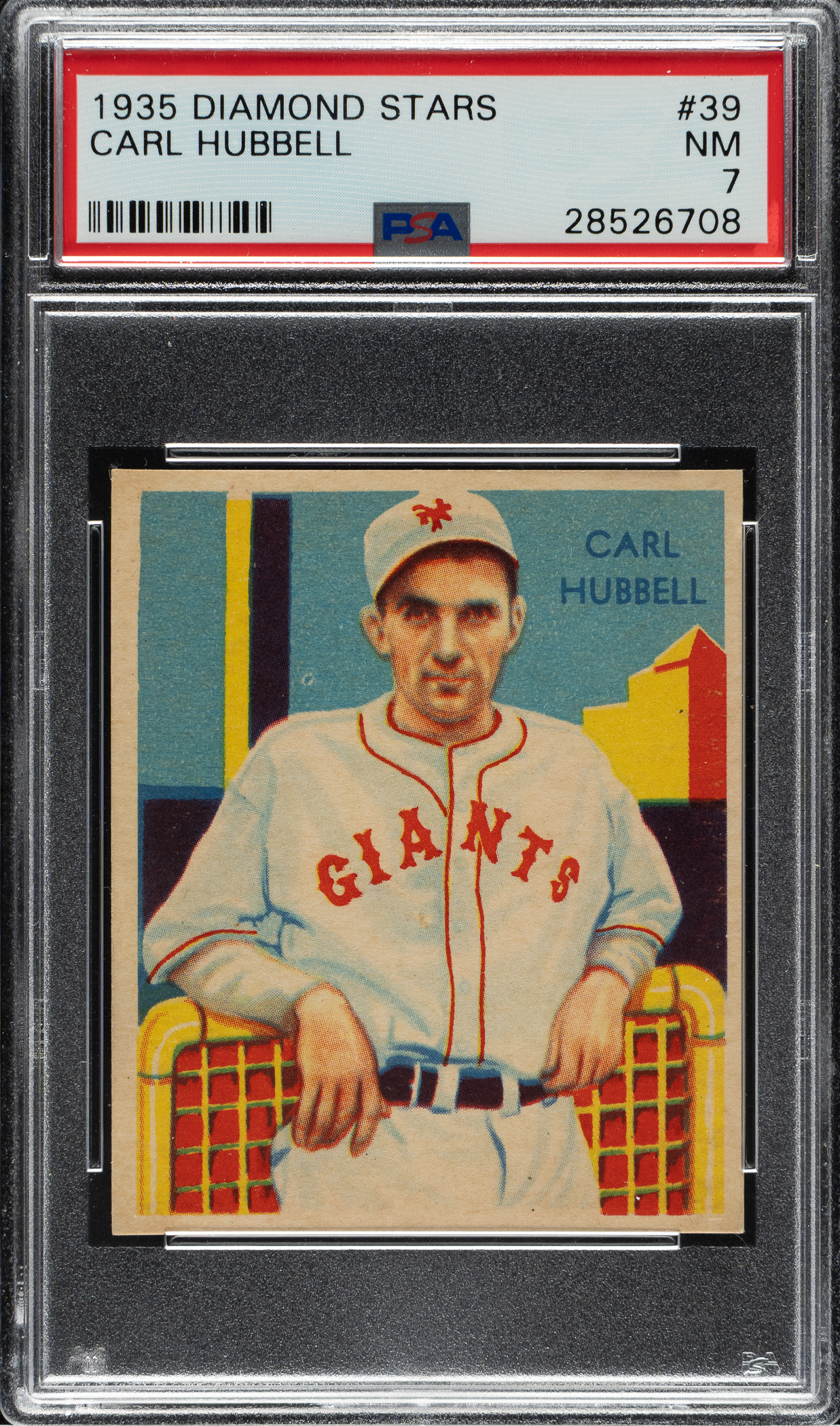Graded NM 7 by PSA. New York Giants Hall of Famer Carl Hubbell.