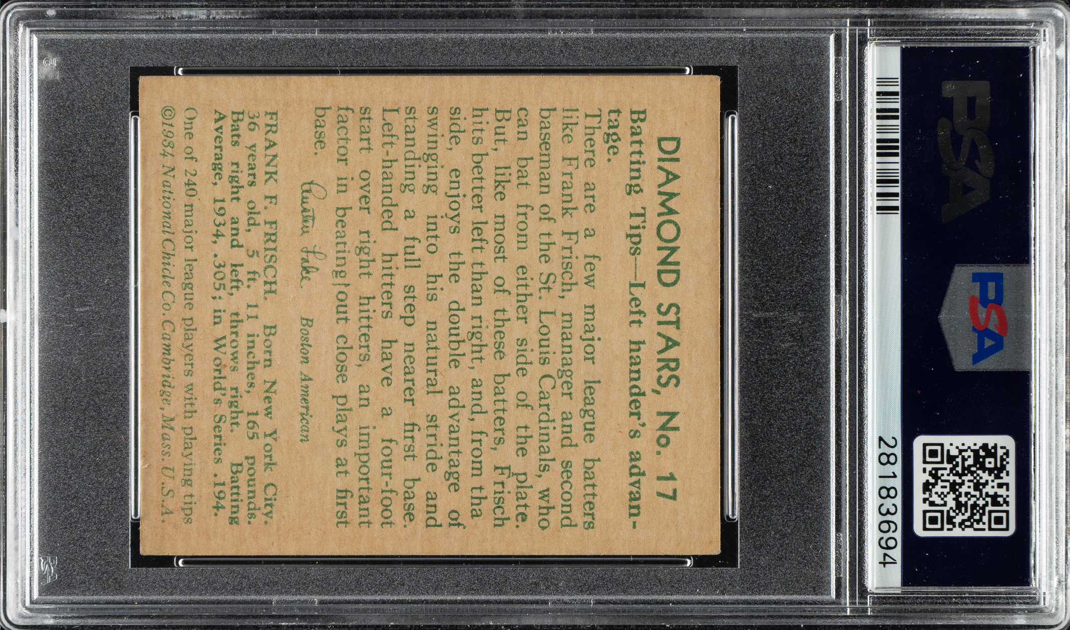 Graded NM 7 by PSA. St. Louis Cardinals Hall of Famer Frankie Frisch.