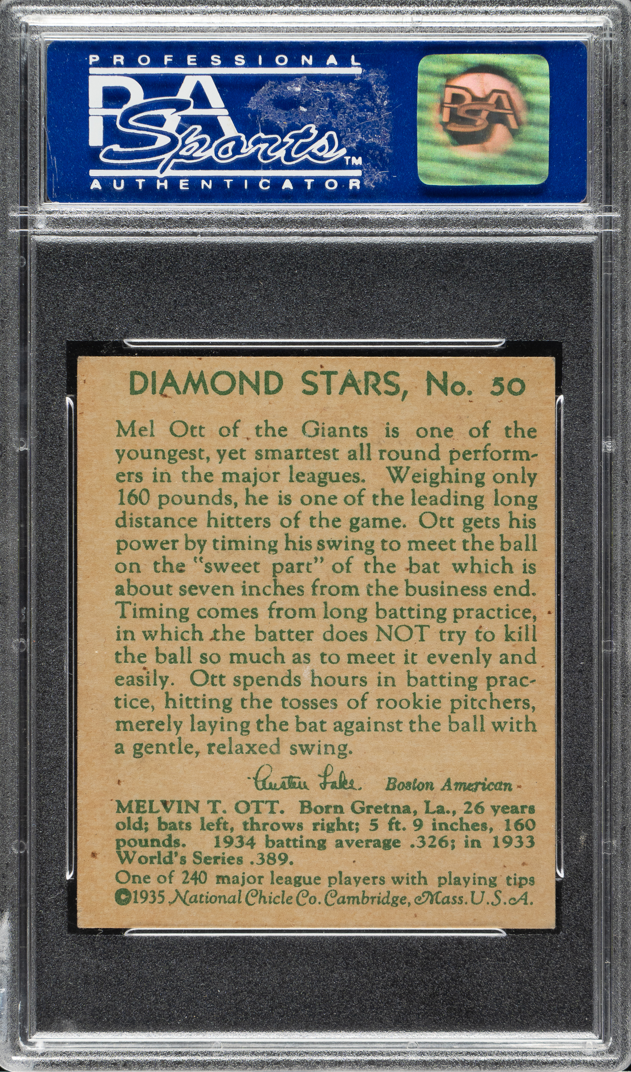 Graded NM 7 by PSA. New York Giants Hall of Famer Mel Ott.
