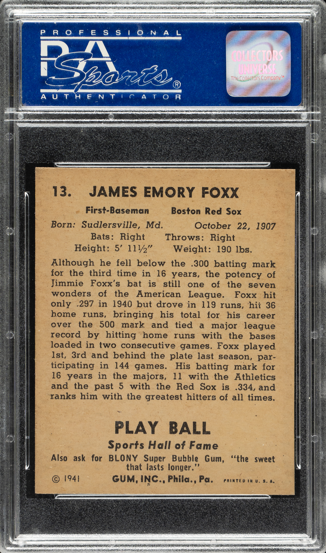 Graded NM-MT 8 by PSA. Boston Red Sox Hall of Famer Jimmie Foxx.