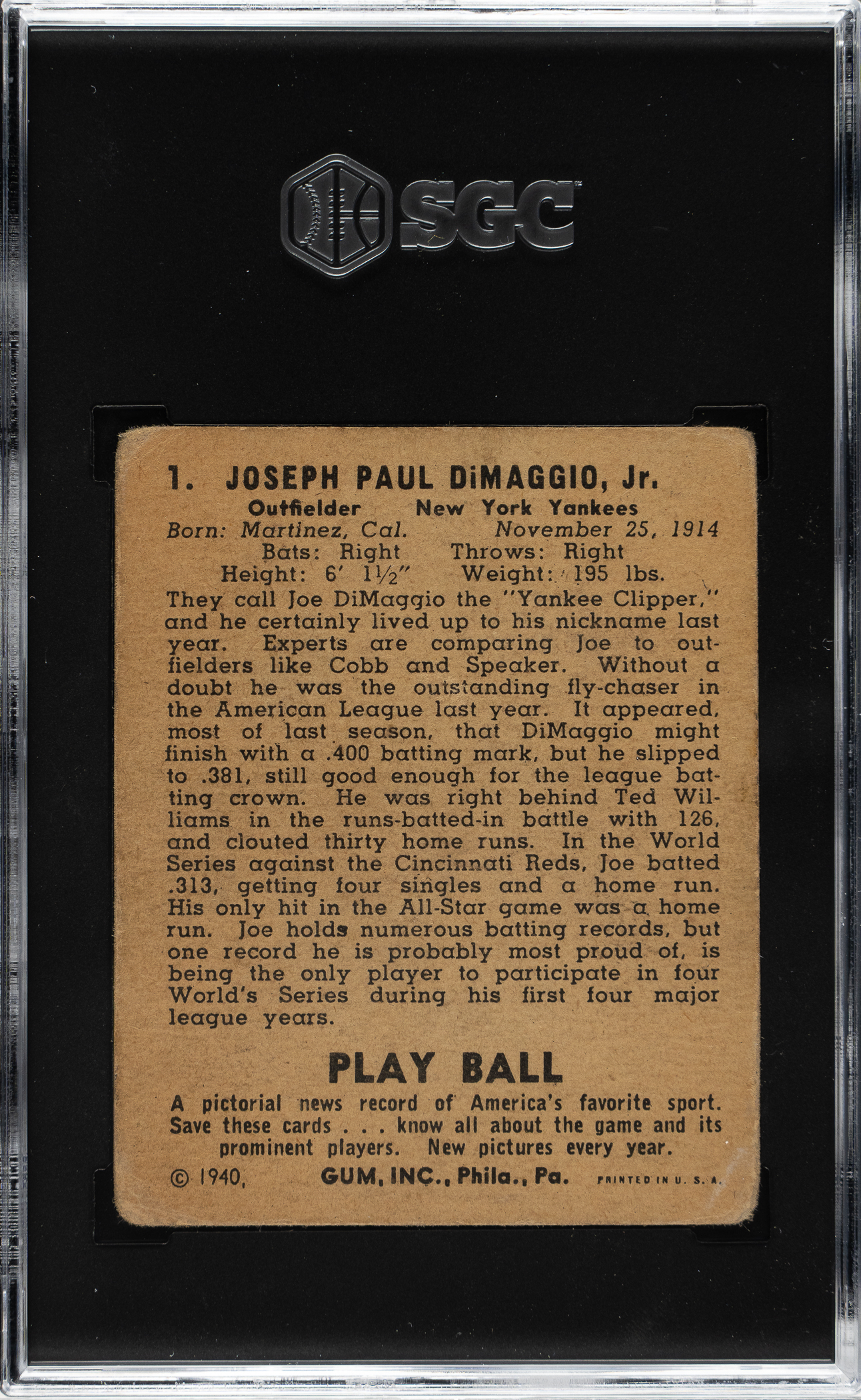 Graded GOOD 2 by SGC. New York Yankees Hall of Famer Joe DiMaggio.