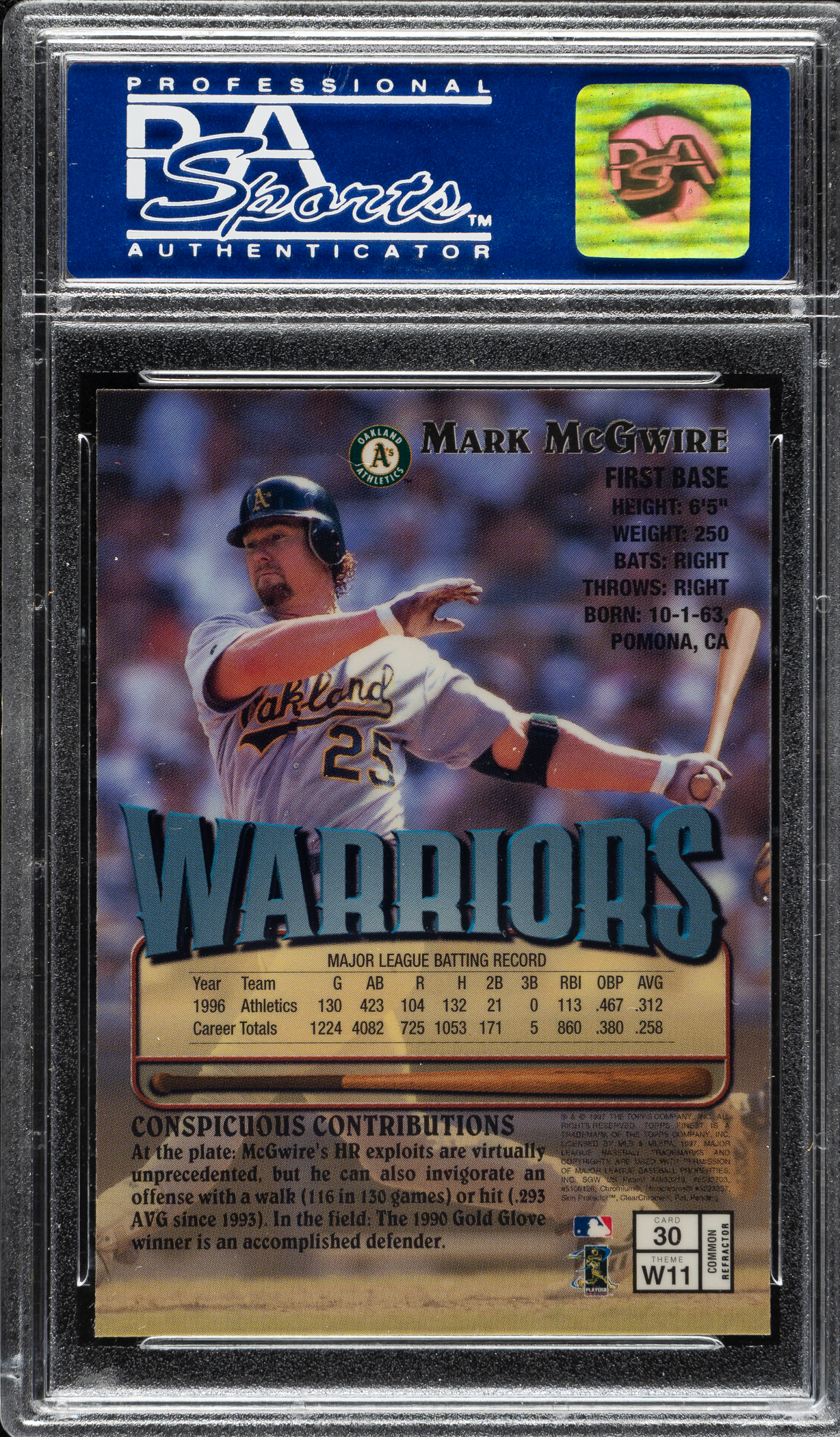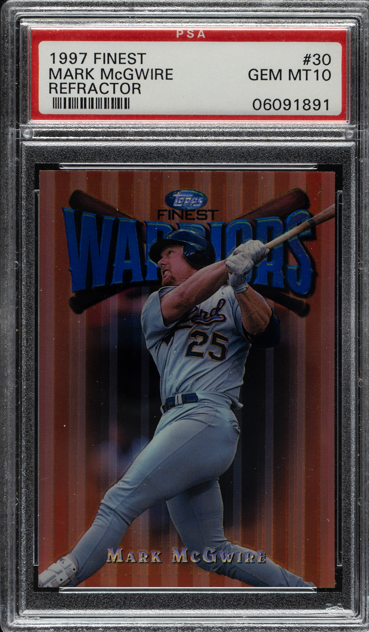 Lot # 2269: 1997 Topps Finest #30 Mark McGwire Refractor PSA GEM MINT 10
