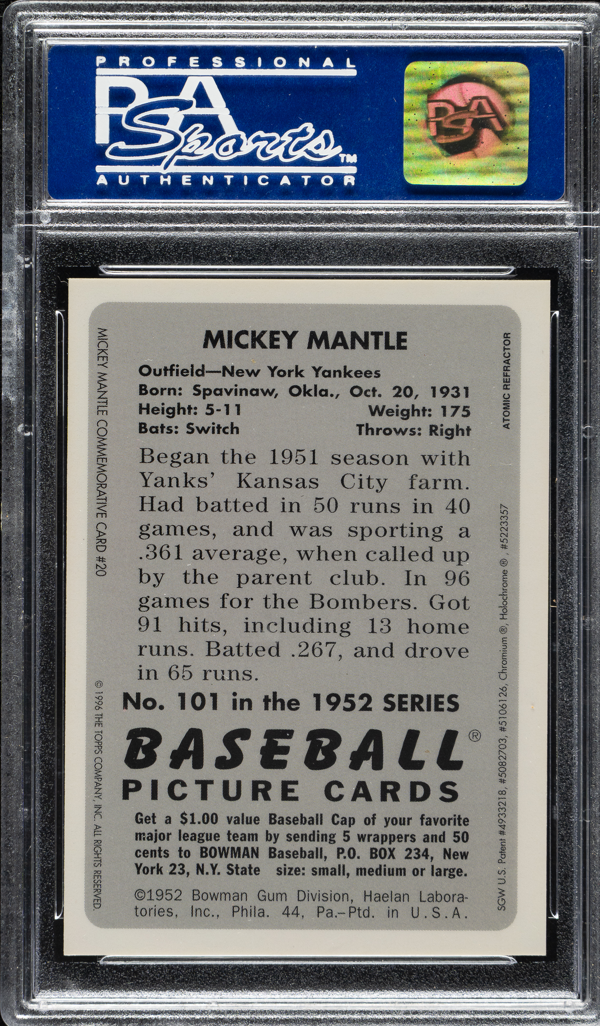 Graded MINT 9 by PSA. New York Yankees Hall of Famer Mickey Mantle.