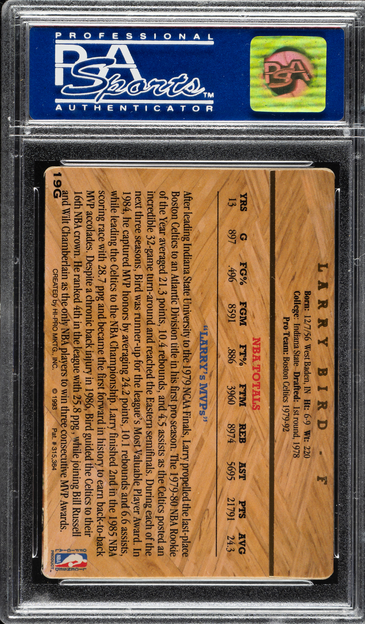 Graded GEM MINT 10 by PSA. Boston Celtics basketball Hall of Famer Larry Bird.