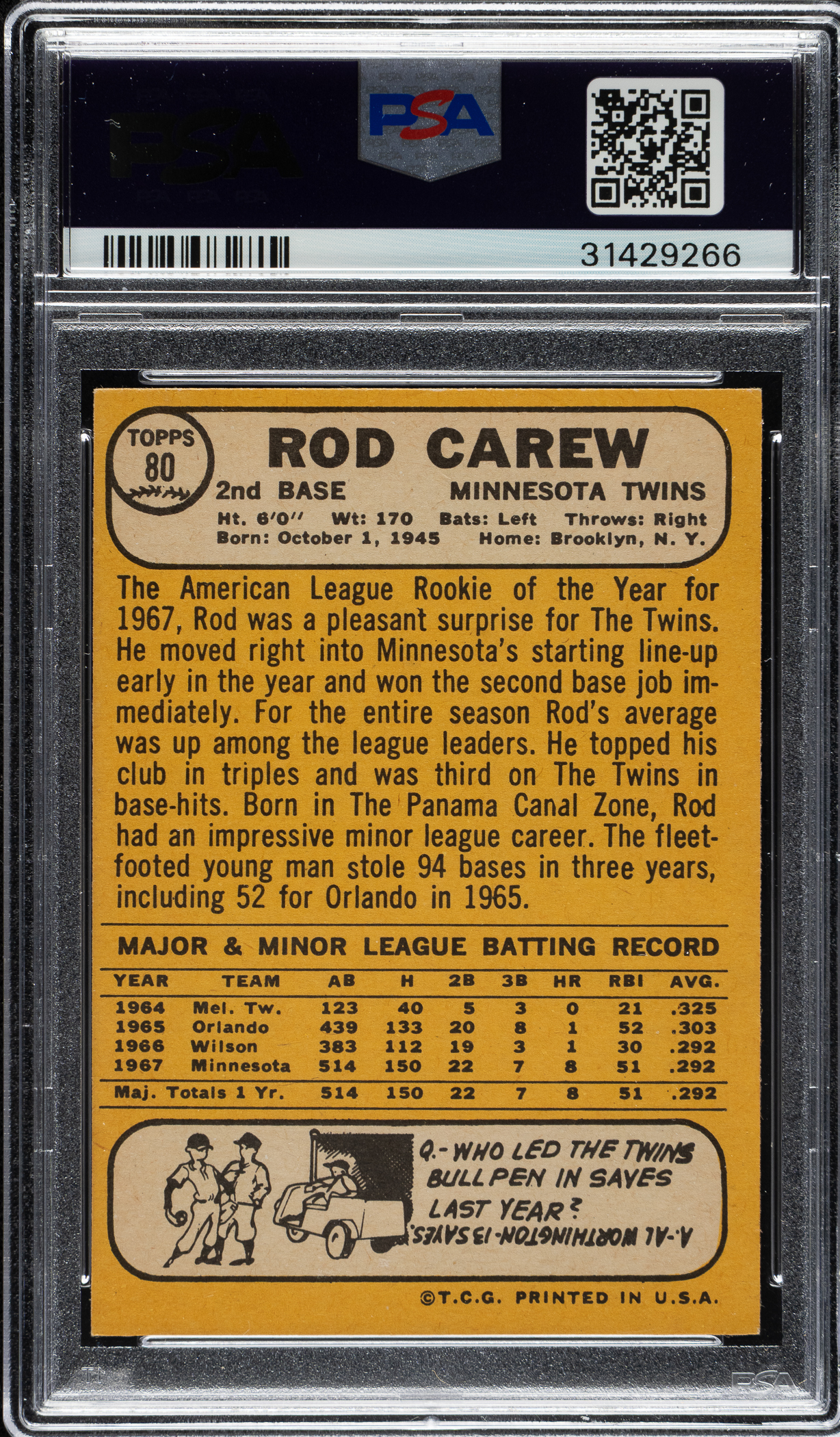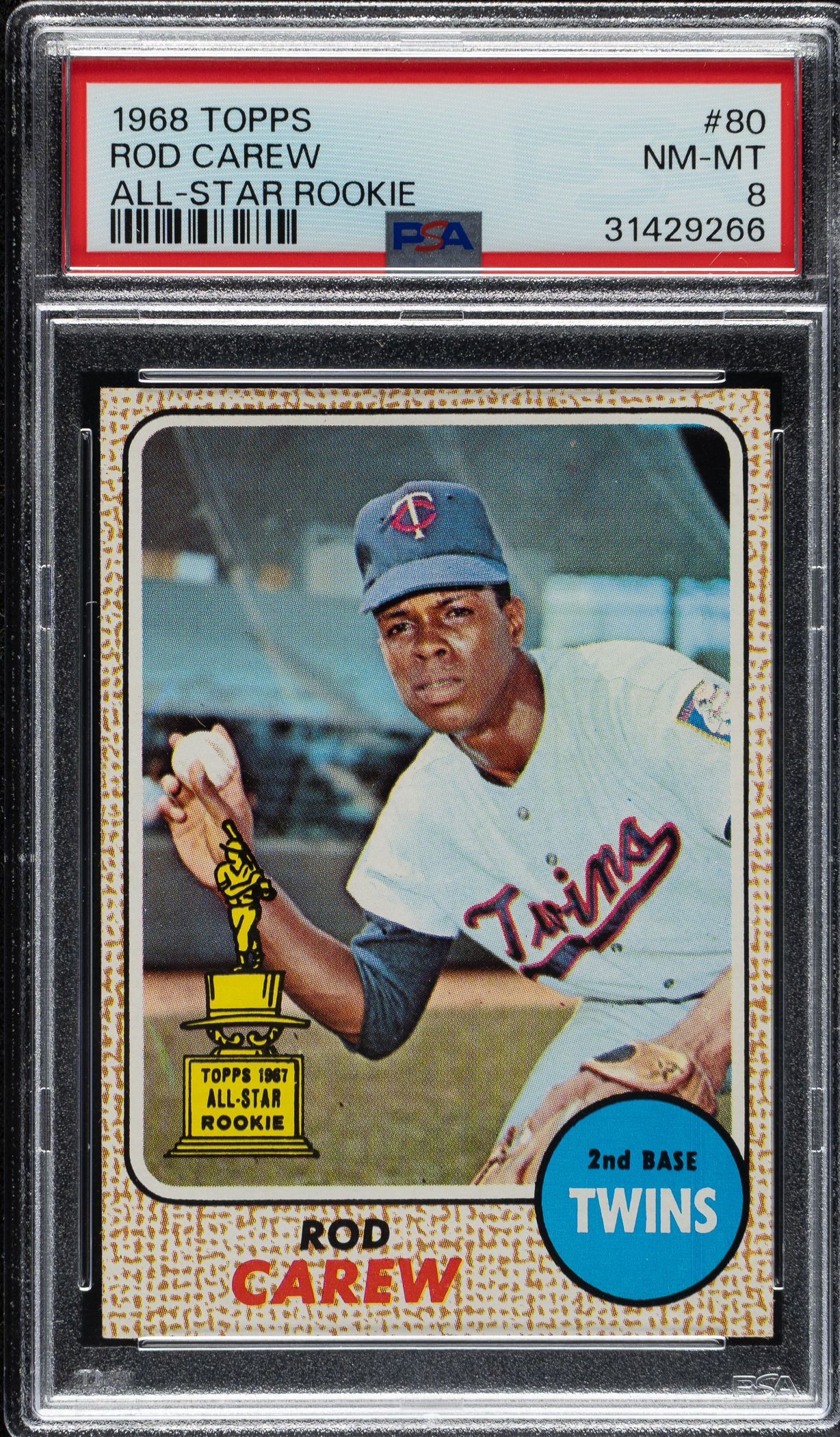 Graded NM-MT 8 by PSA. Minnesota Twins Hall of Famer Rod Carew.