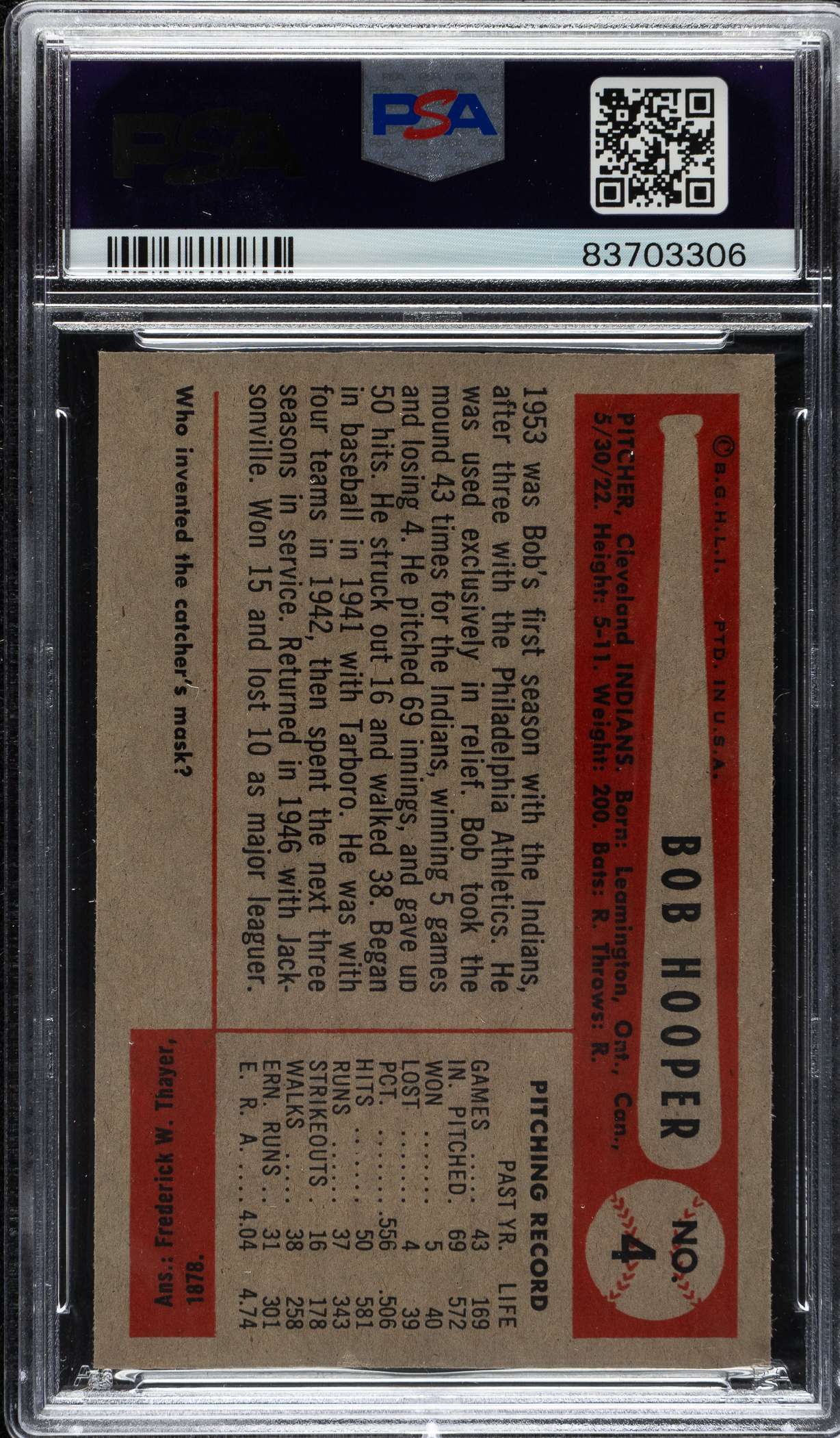 Lot # 1568: 1954 Bowman #4 Bob Hooper PSA MINT 9
