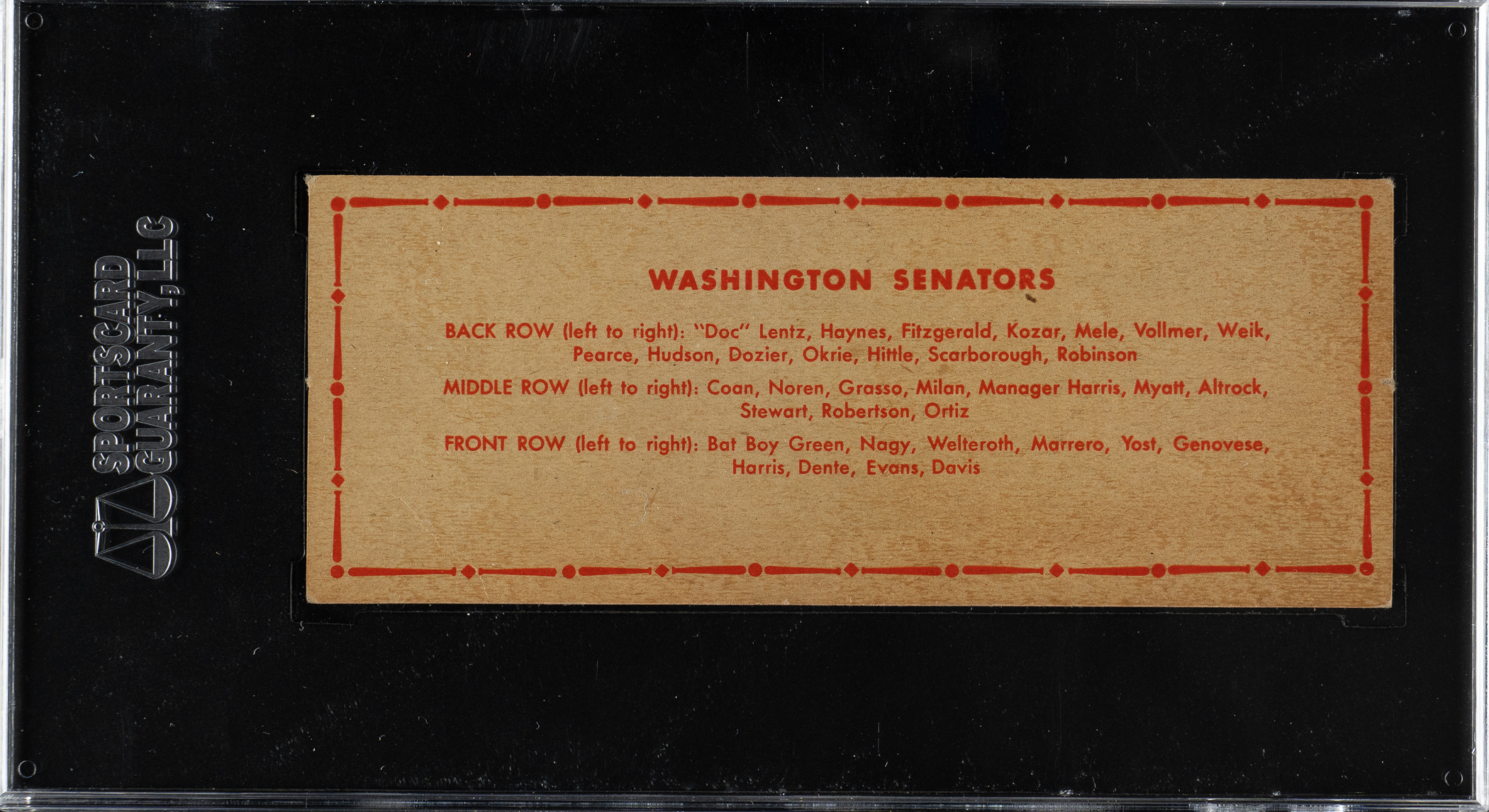 Lot # 1404: 1951 Topps Teams Washington Senators Dated SGC VG+ 3.5