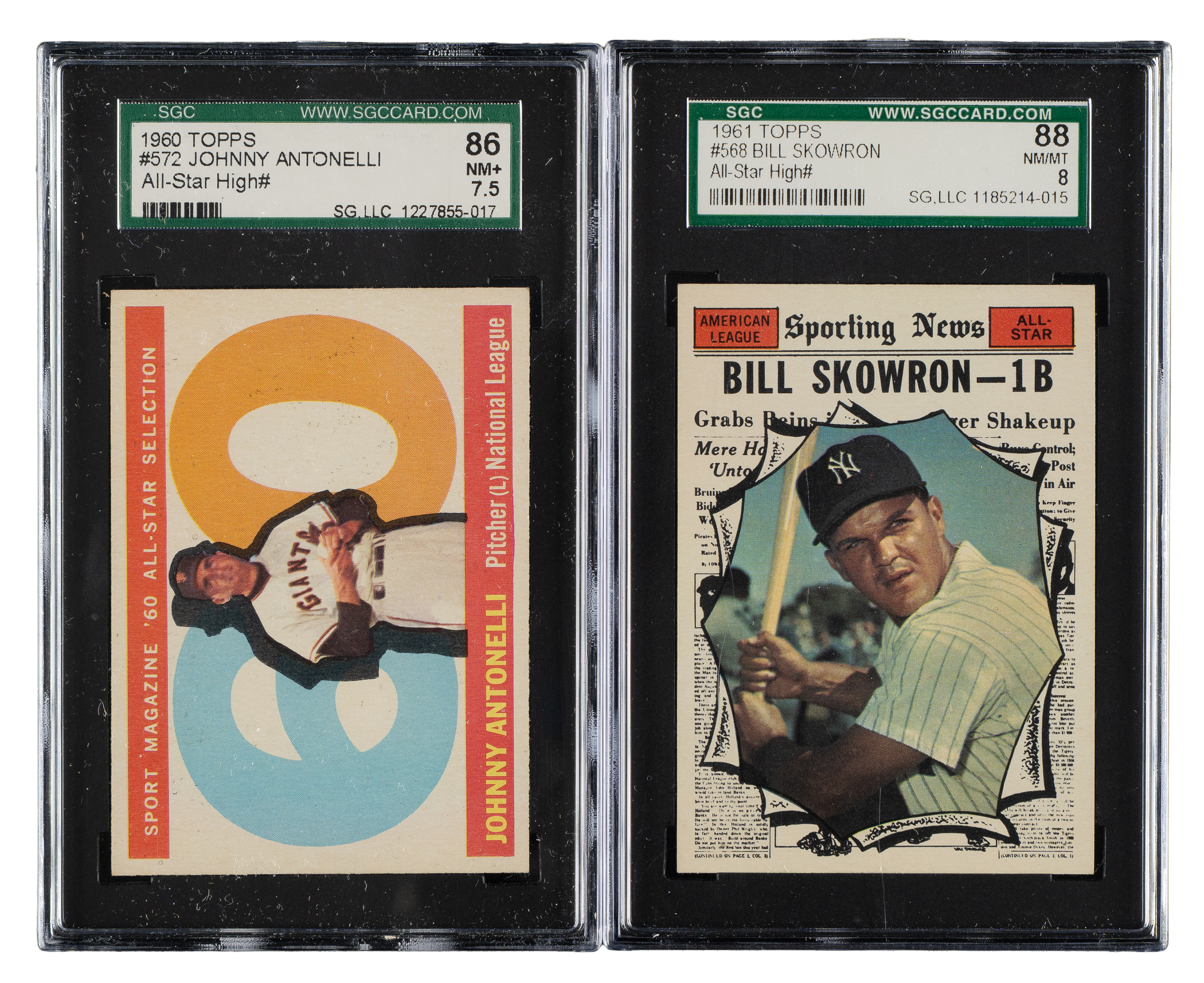 Pair of 1960 and 1961 Topps cards, both graded and encapsulated by SGC. This pair consists of the following: 1) 1960 Topps #572 Johnny Antonelli All-Star (NM+ 86). 2) 1961 Topps #568 Bill Skowron All-Star (NM/MT 88). Total: 2 cards.
