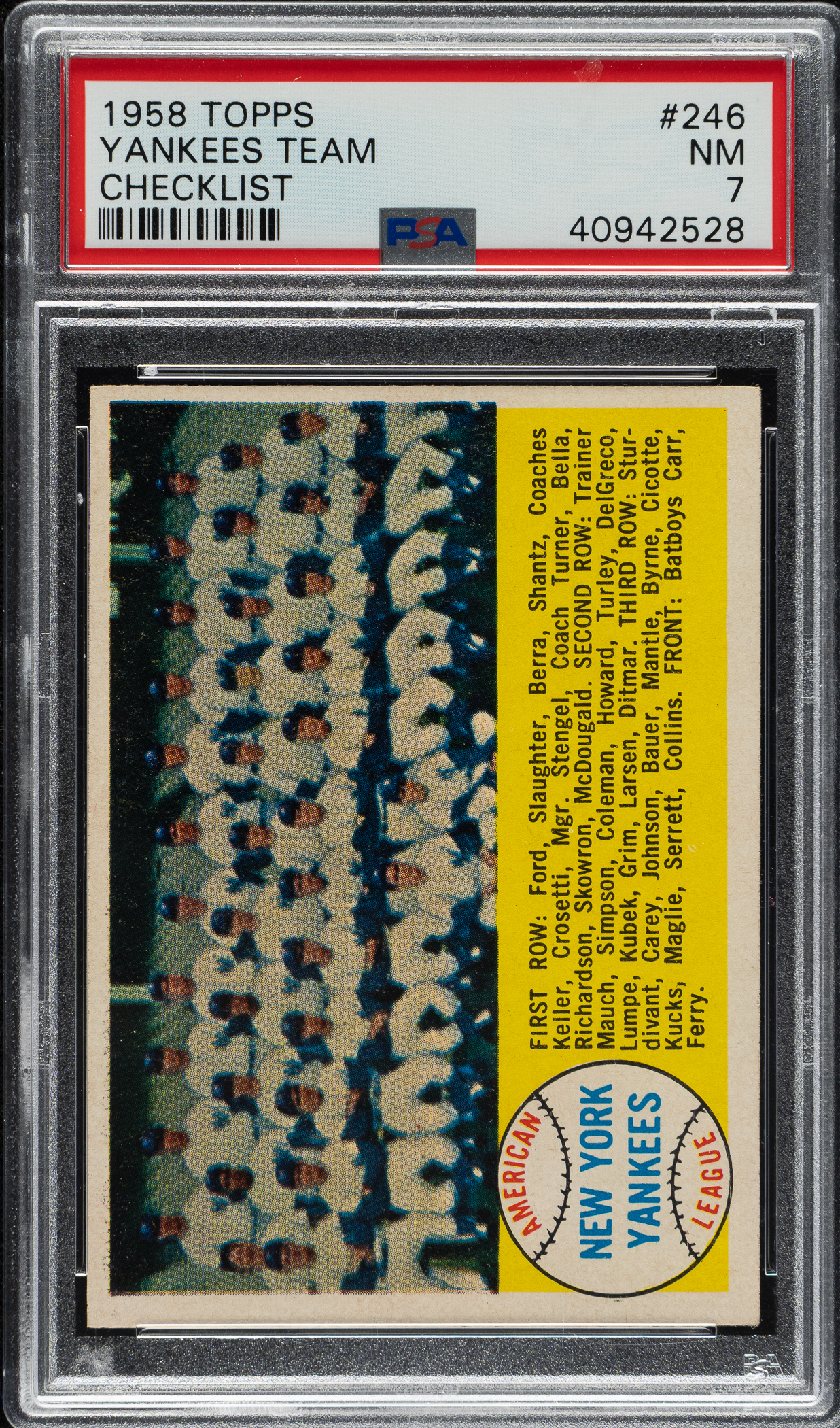 Lot # 1740: 1958 Topps #246 New York Yankees Team PSA NM 7