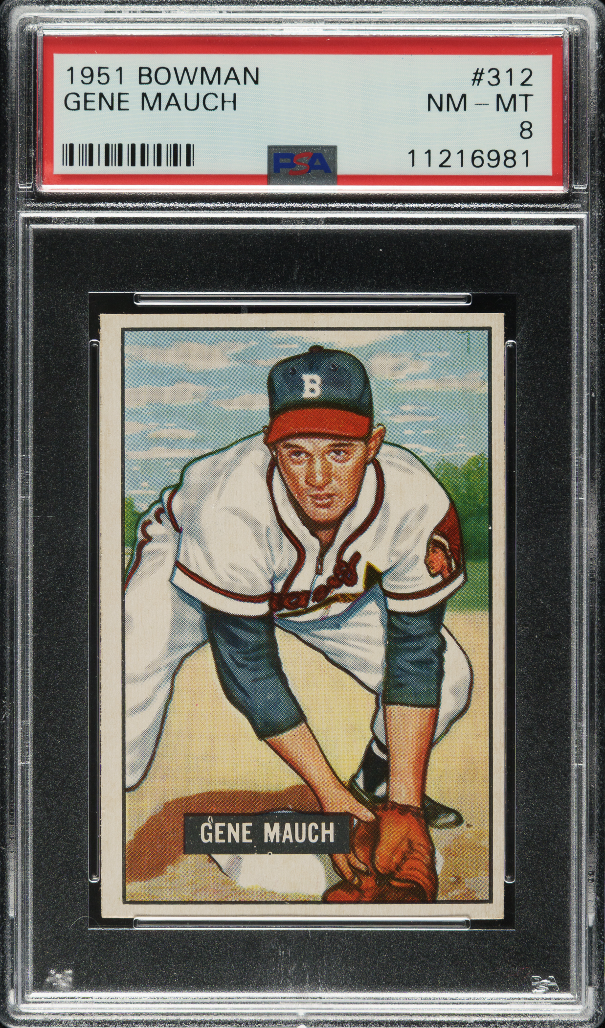Lot # 1390: 1951 Bowman #312 Gene Mauch PSA NM-MT 8