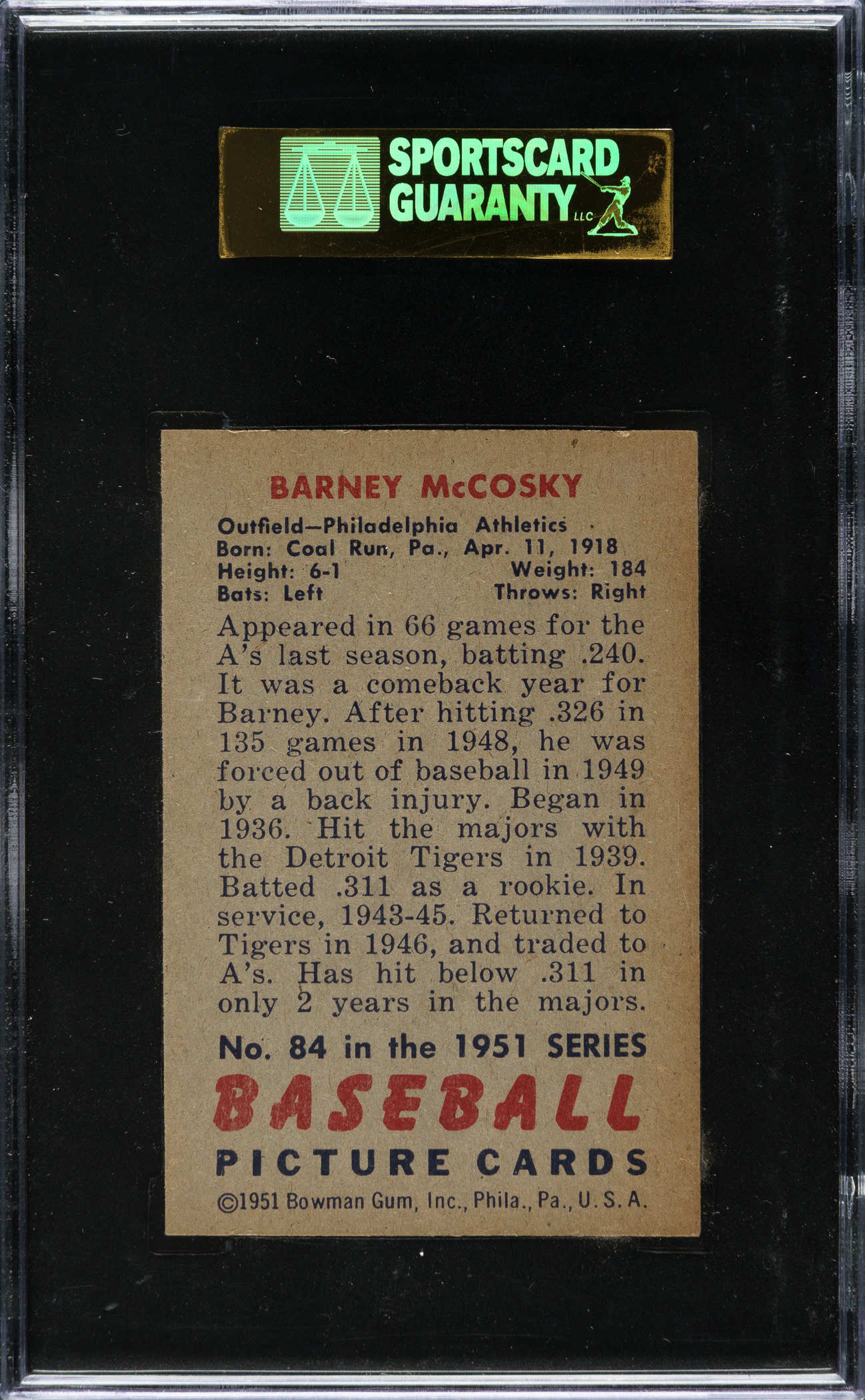 Graded NM/MT 88 by SGC. Philadelphia Athletics.