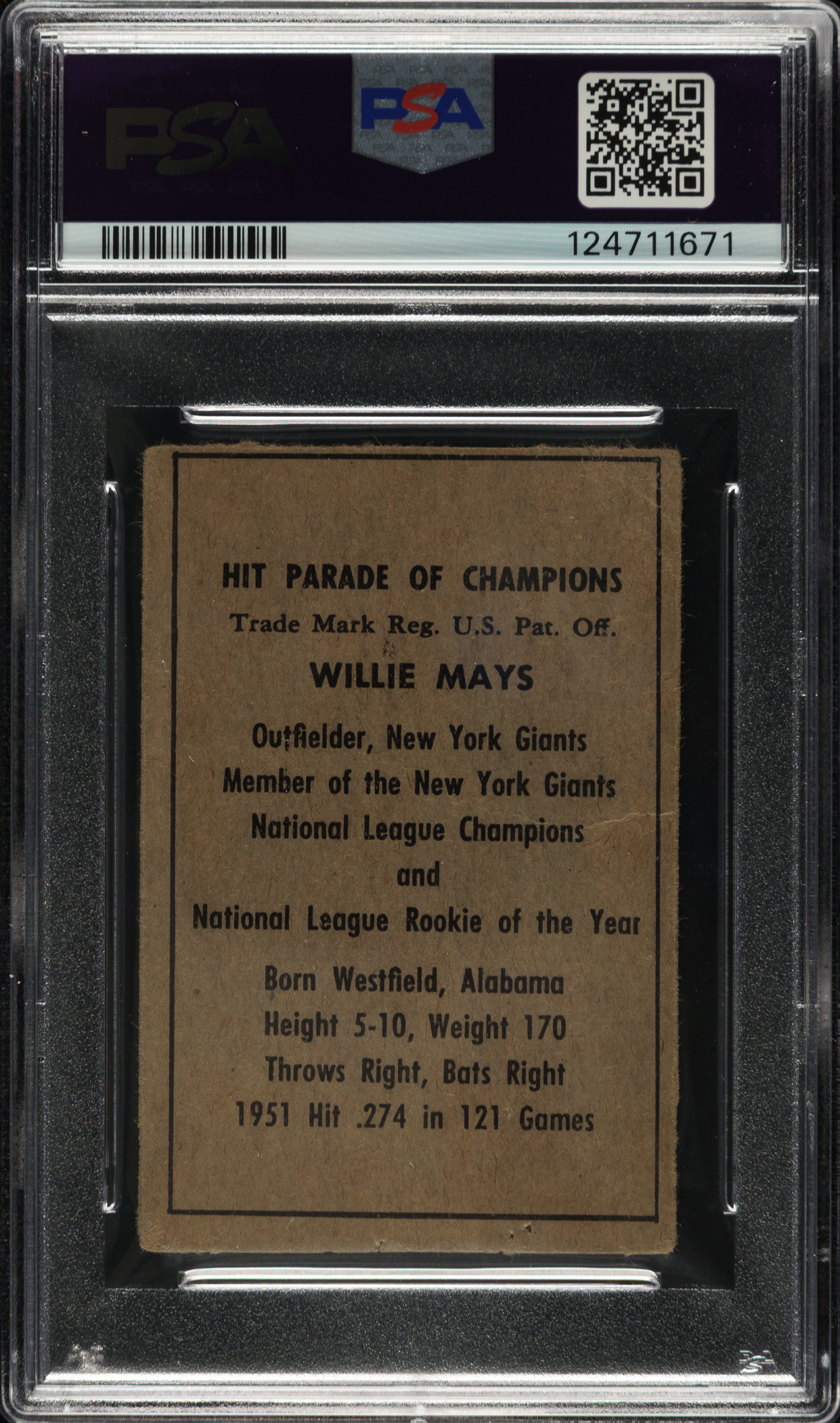 Graded POOR 1 by PSA. New York Giants Hall of Famer Willie Mays.