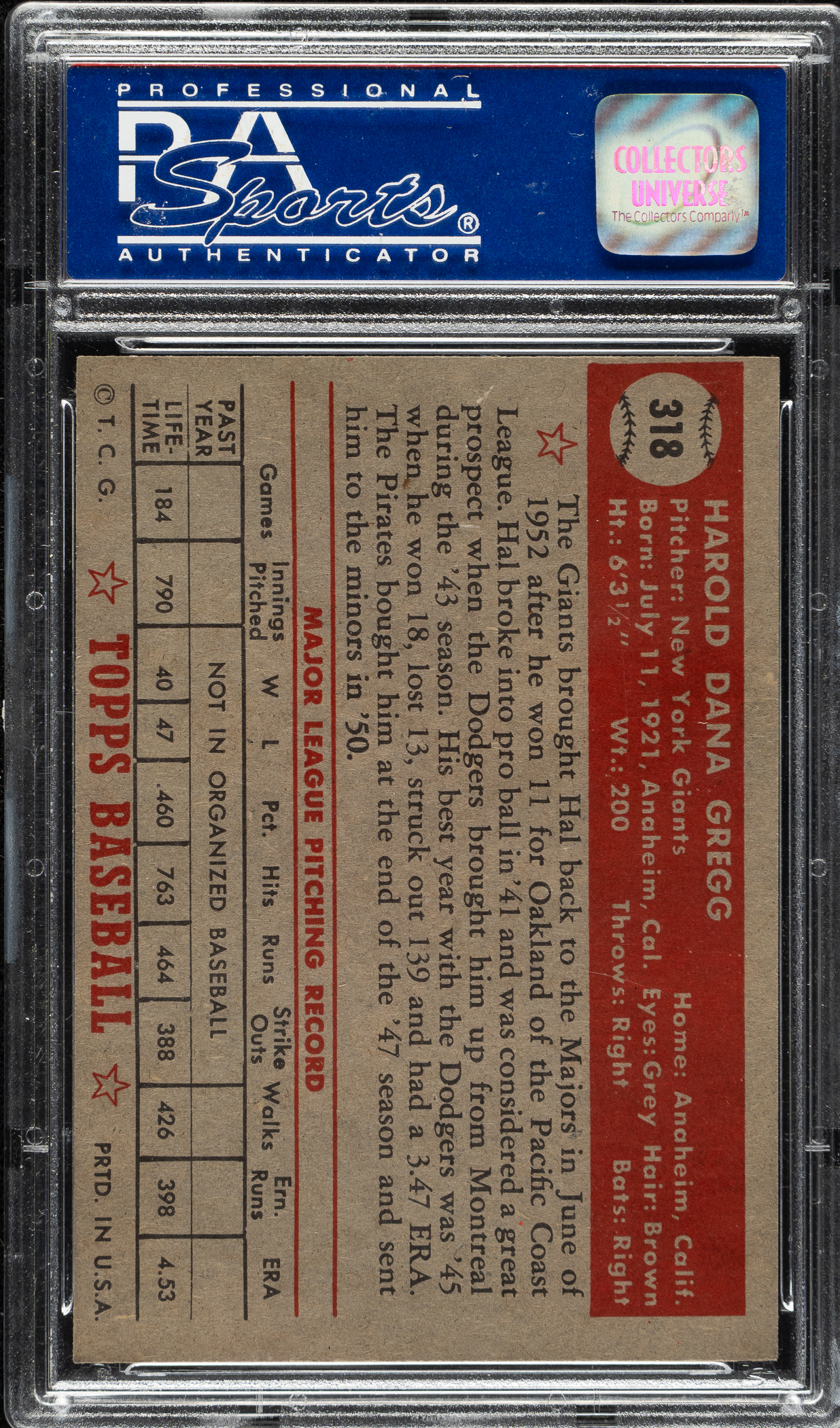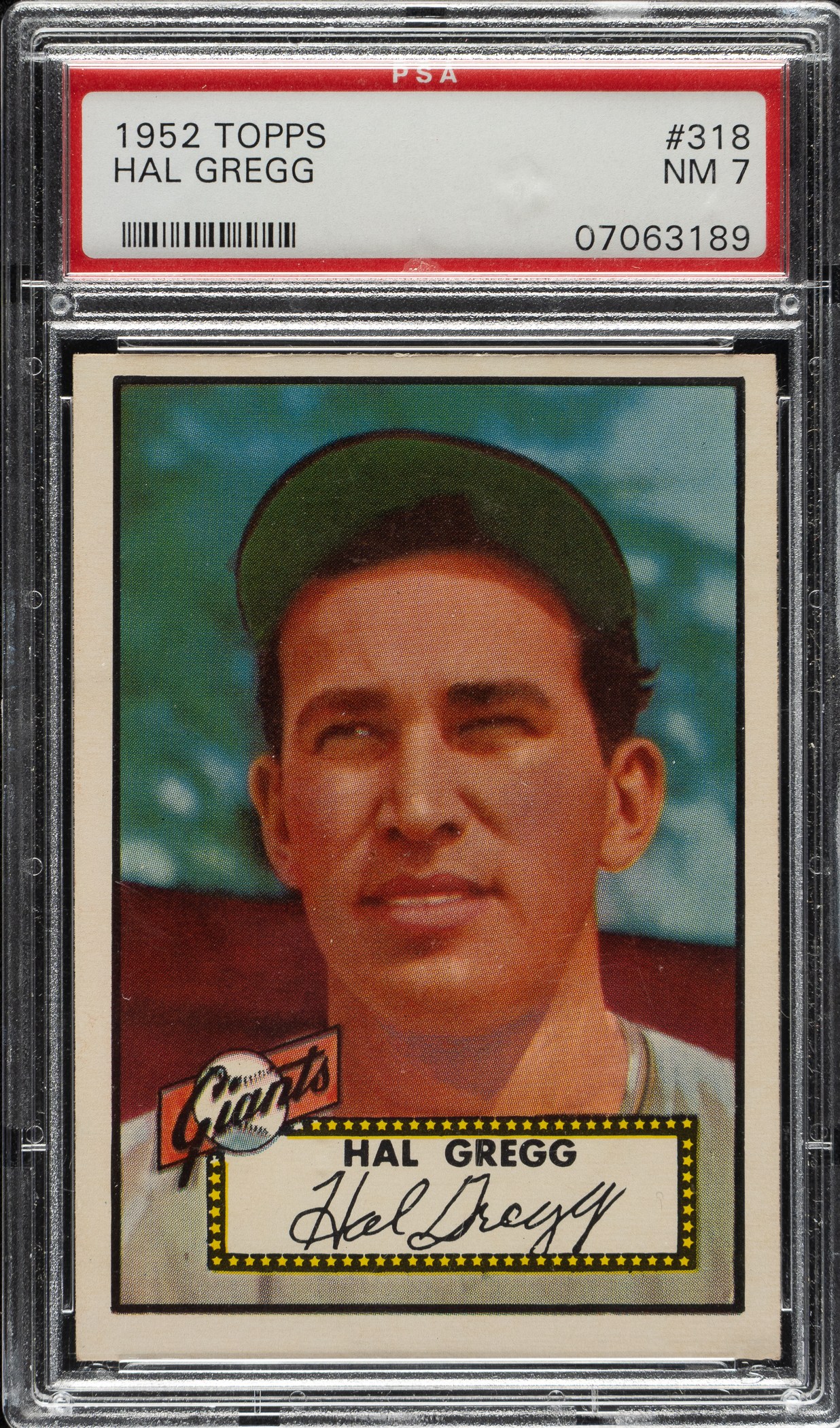 Lot # 1465: 1952 Topps #318 Hal Gregg High Number PSA NM 7