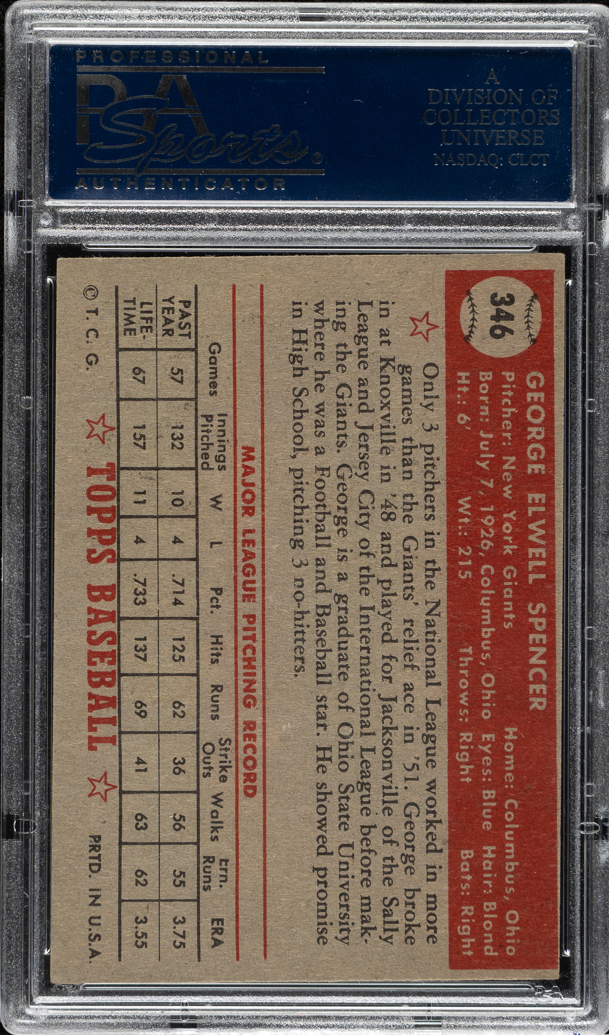 Lot # 1480: 1952 Topps #346 George Spencer High Number PSA NM 7