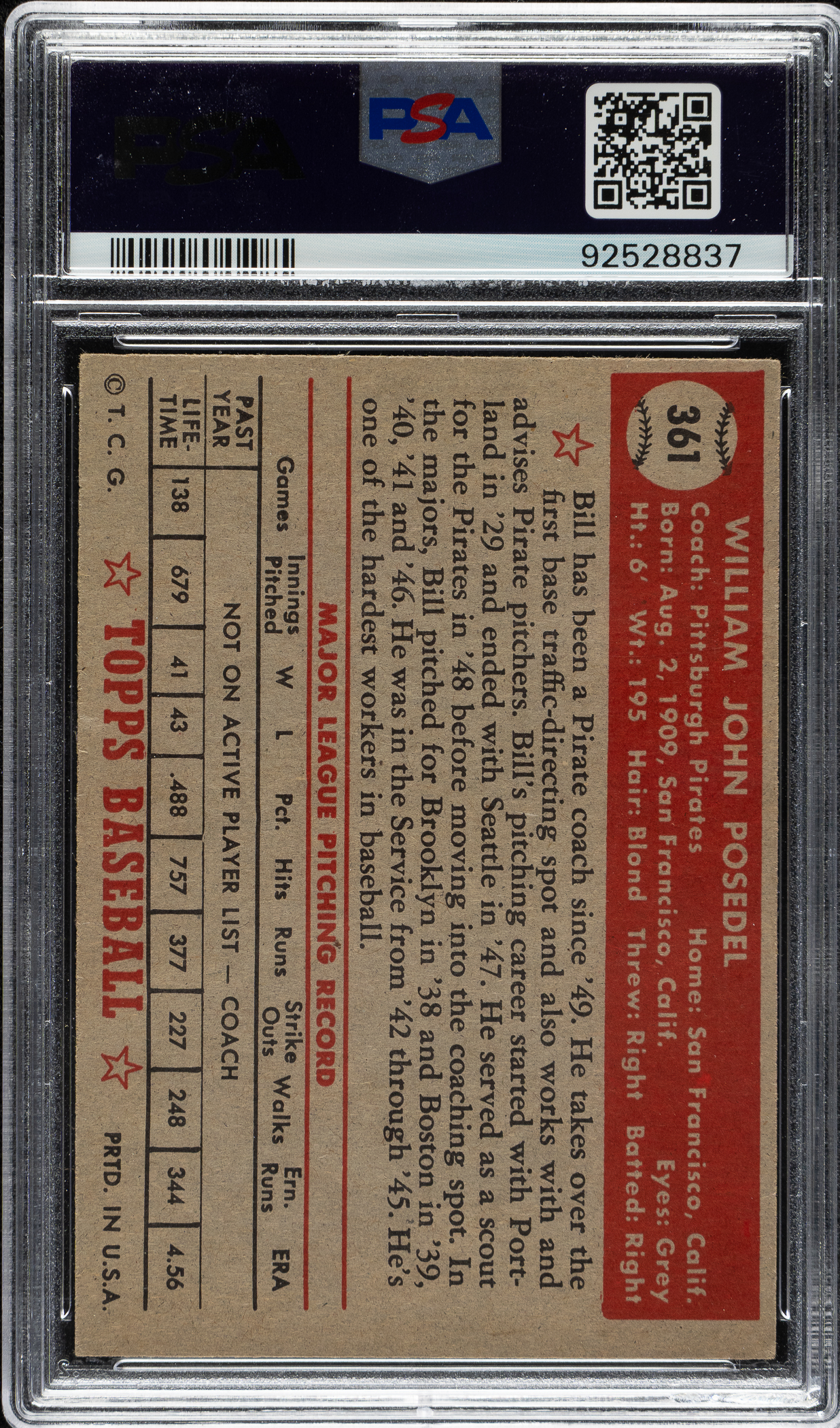 Lot # 1490: 1952 Topps #361 Bill Posedel High Number PSA EX-MT 6