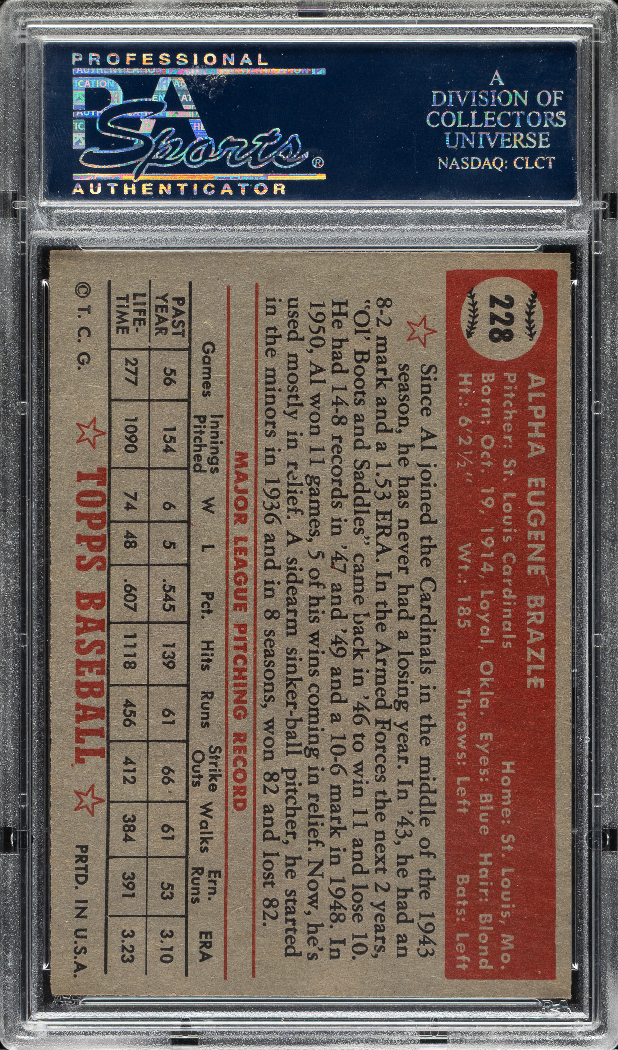 Lot # 1035: 1952 Topps #228 Al Brazle PSA NM-MT 8