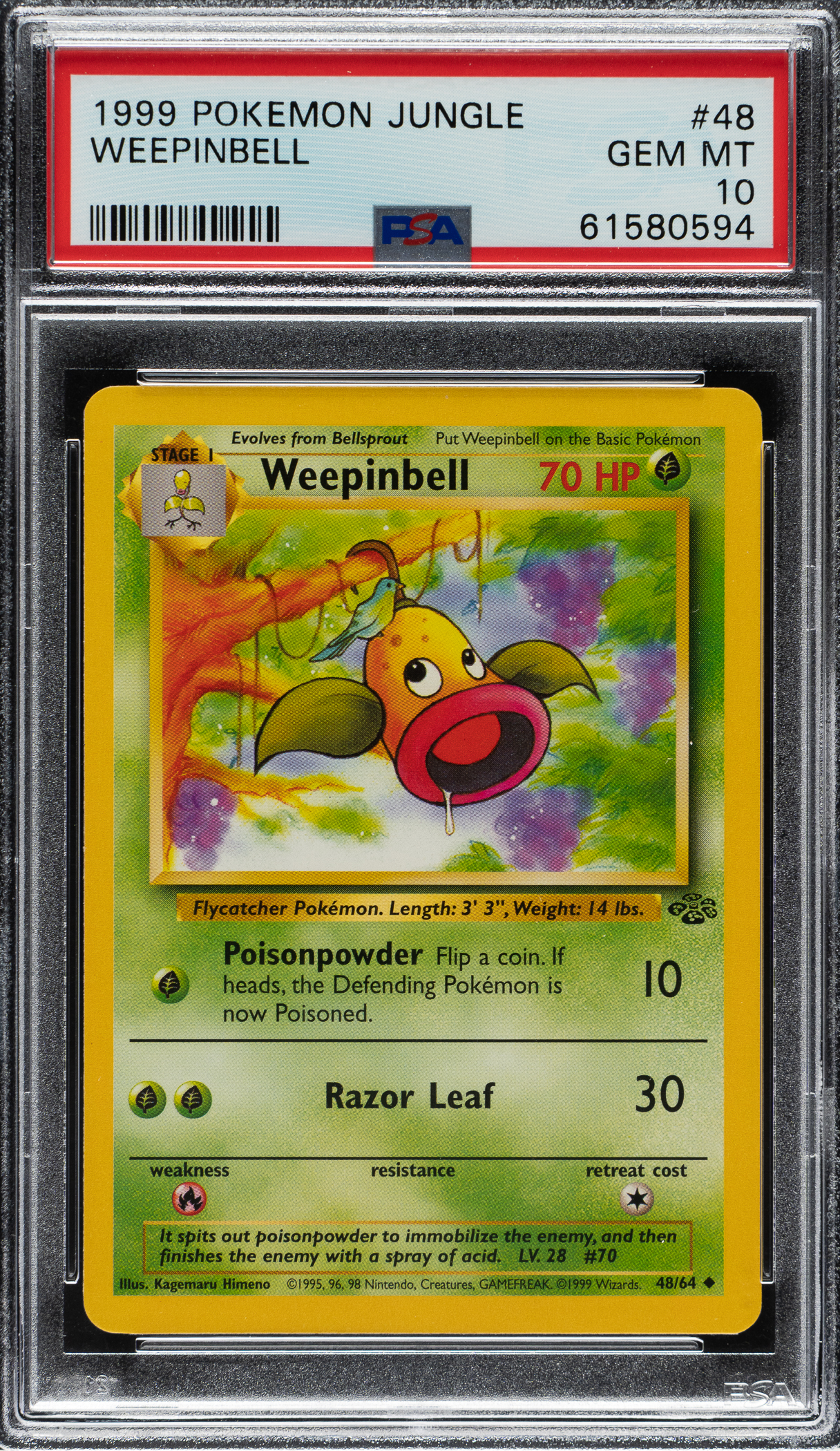 Lot # 3491: 1999 Pokemon Jungle #48 Weepinbell PSA GEM MINT 10
