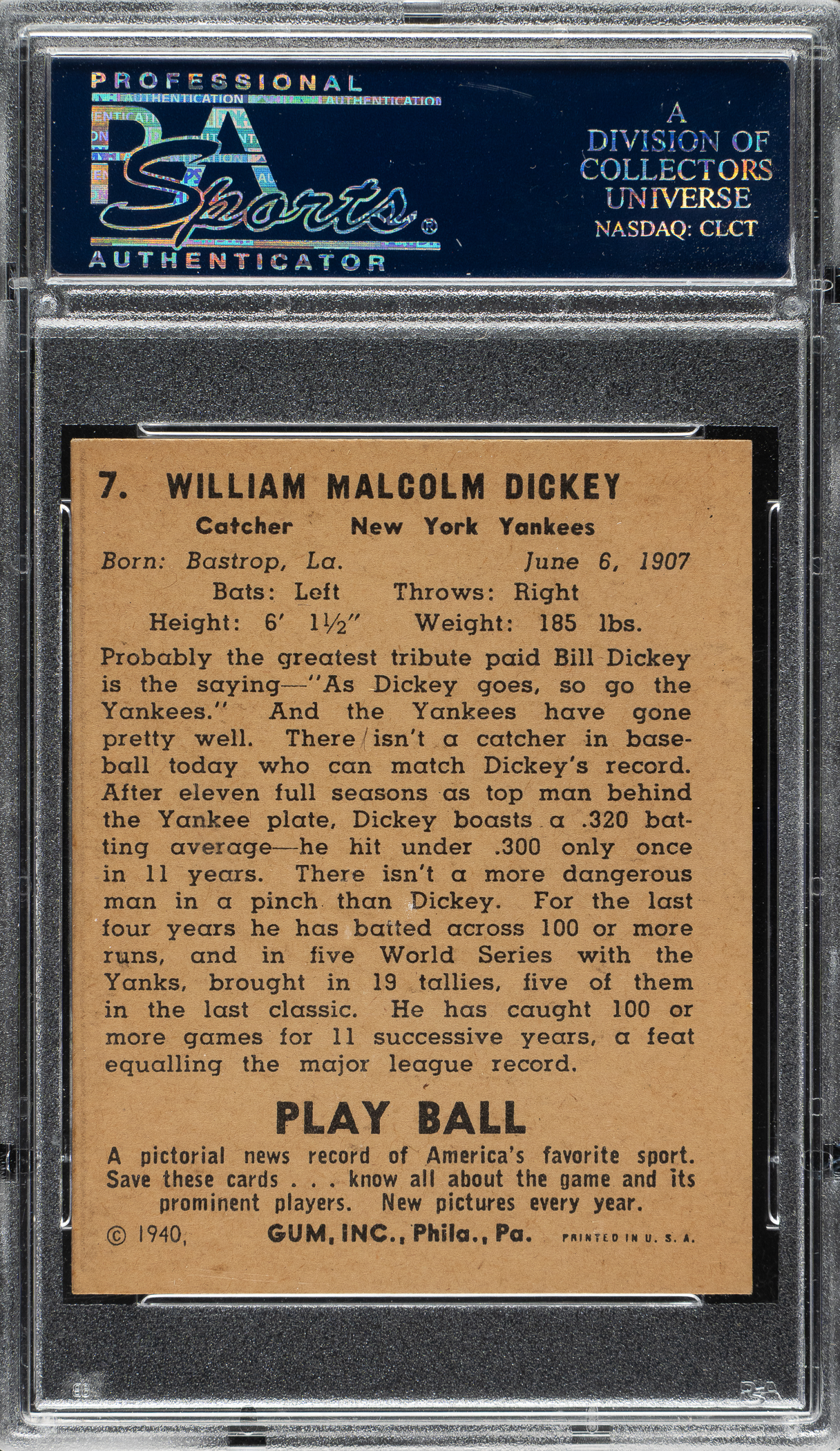 Graded EX-MT 6 by PSA. New York Yankees Hall of Famer Bill Dickey.